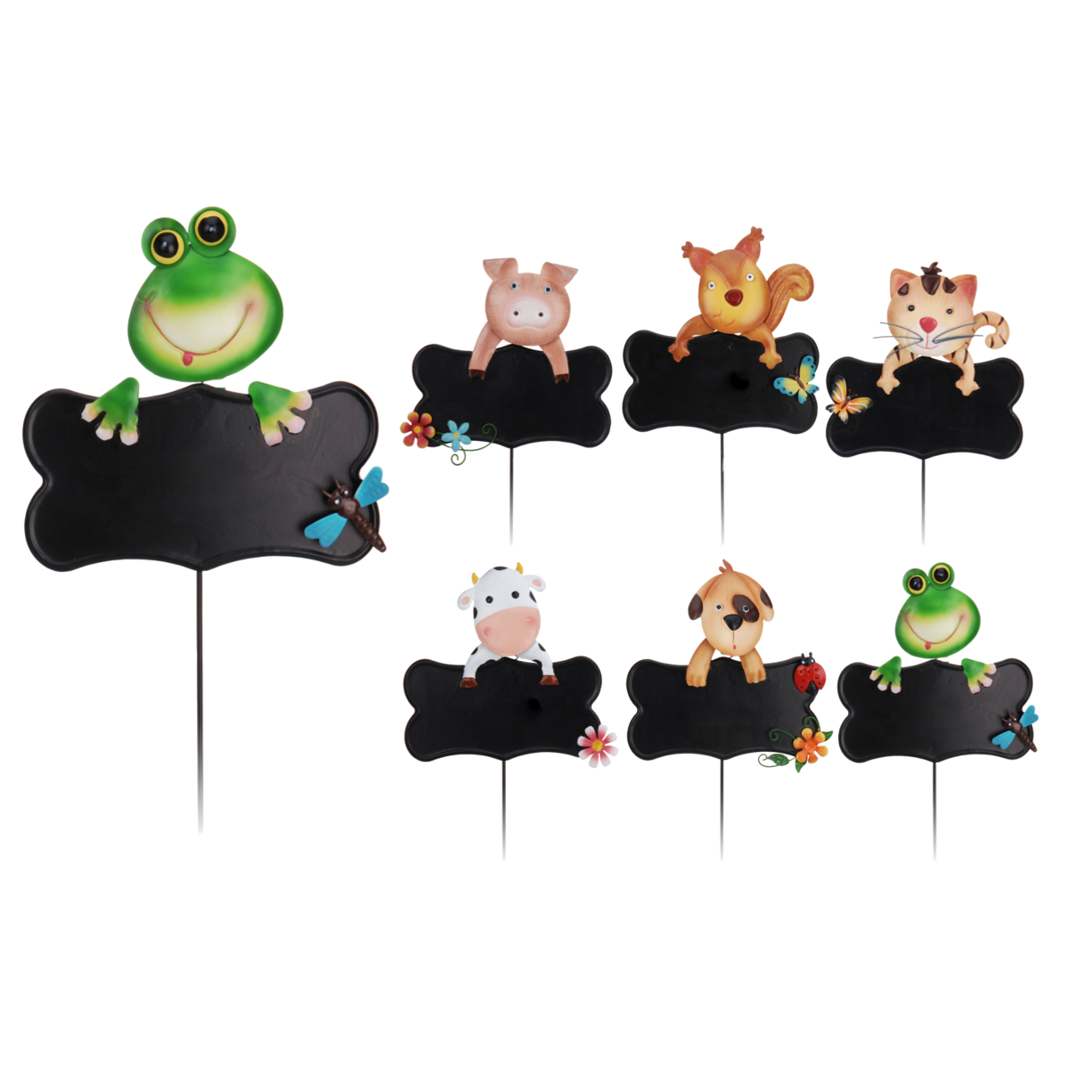 Irható jelző tábla növényhez, mérete: 20x1x53cm, 115 grammos, 6 állat formájú (macska / béka / pig / kutya / mókus / tehén)