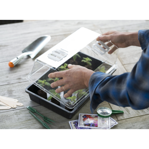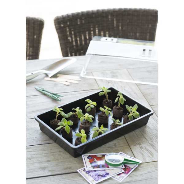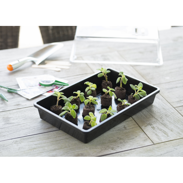 Csiráztató tálca fedél nélkül, fekete színben.