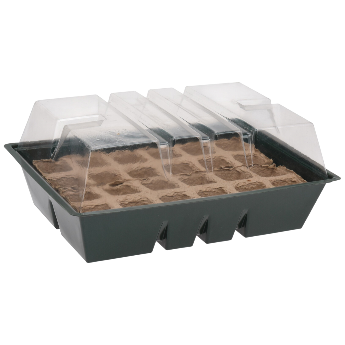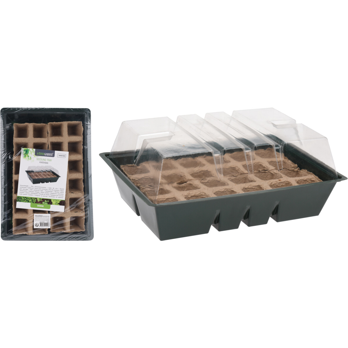 2x12 papír tartó rekesszel; műanyag tartó és műanyag tető. Ezzel a készlettel elkezdheti kedvelt növényeit nevelgetni, hogy a későbbiekben kedvére átlátható kiskertet ápolhasson.