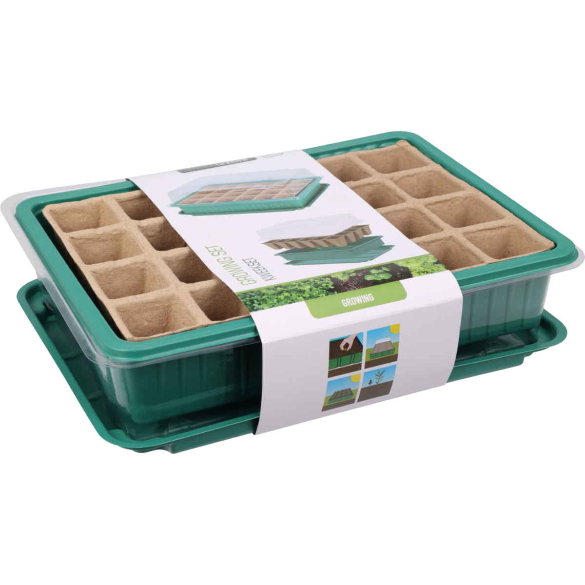 Palántanevelő szett tetővel 27,5x20x11cm papír ültetővel 24 ültetőlyukkal