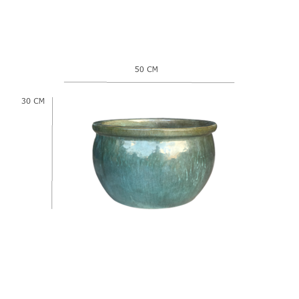 Ez a zománcozott XL méretű kerámia kaspó különleges antik moha színével és fényes mázolt felületével stílusos megjelenést kölcsönöz bármely környezetnek. Letisztult formája és nagy mérete ideálissá teszi nagyobb növények, díszcserjék elhelyezésére, kültéren és beltéren egyaránt.