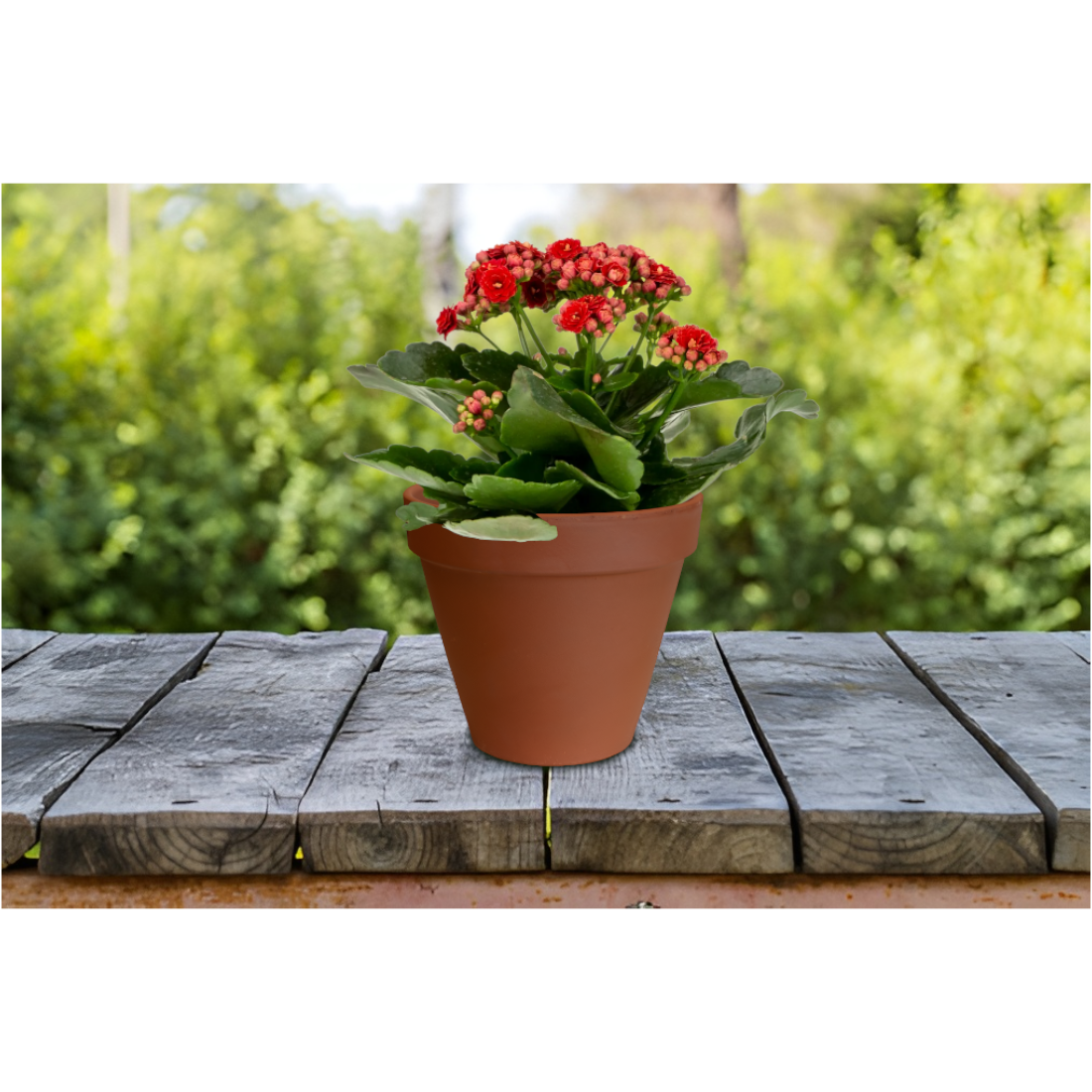 Agyagcserép 19 cm-es átmérővel. Barnásvöröses színe és elegáns, visszafogott stílusa mediterrán érzetet kelt. Kiváló minőségű agyagból készült, jó víztartó képességgel. Virágok és egyéb zöld növények ültetésére. Beltéri és kültéri használatra egyaránt alkalmas. Nem fagyálló.