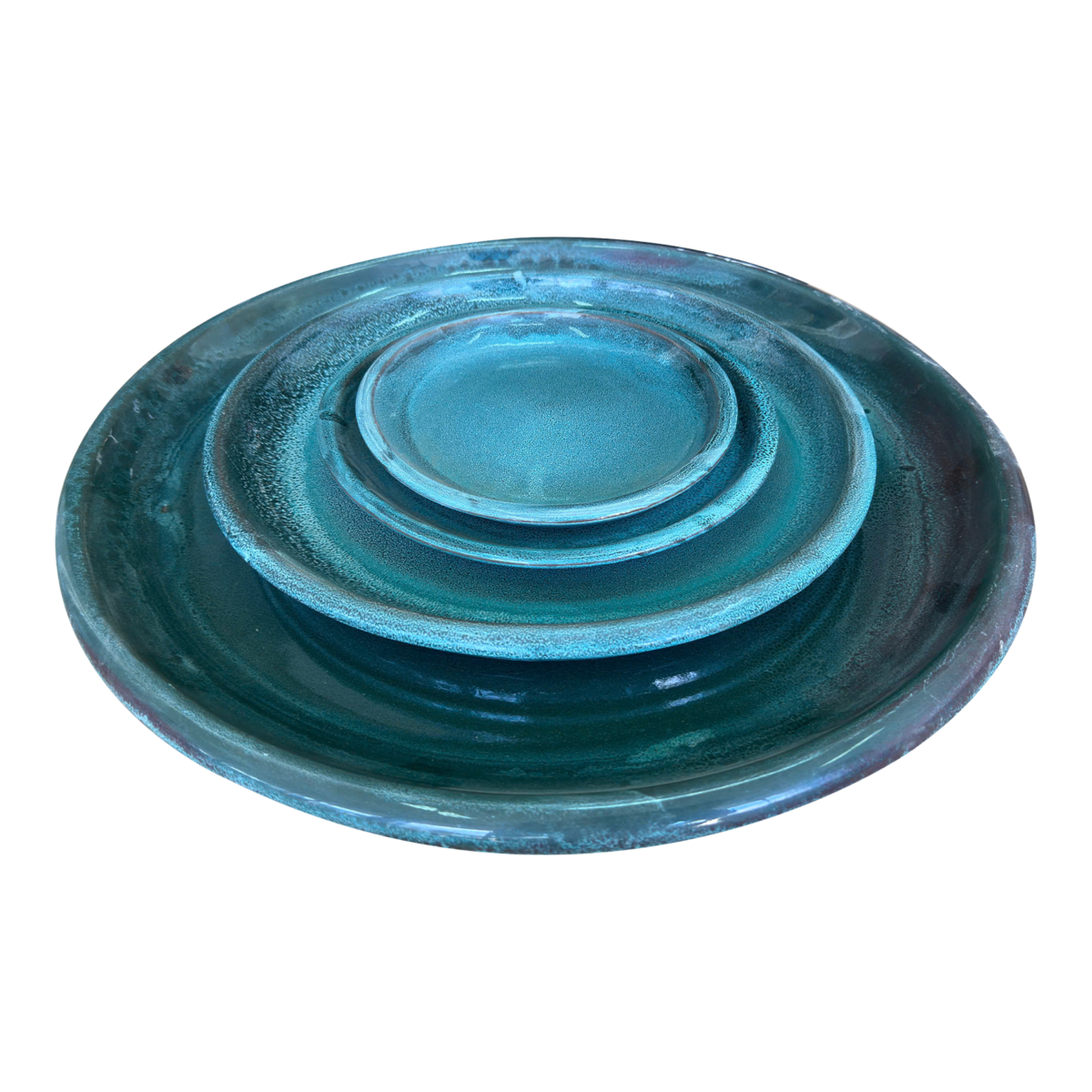 Antik zöld kerámia kaspó alátét 38 cm – esztétikus és praktikus kiegészítő