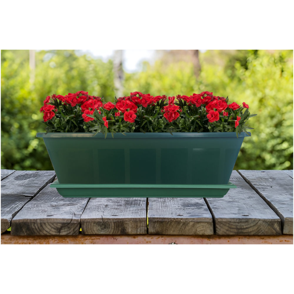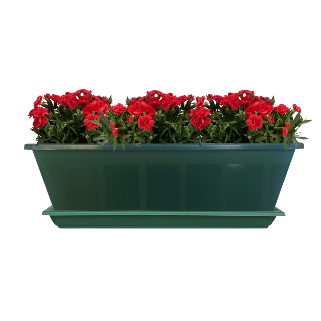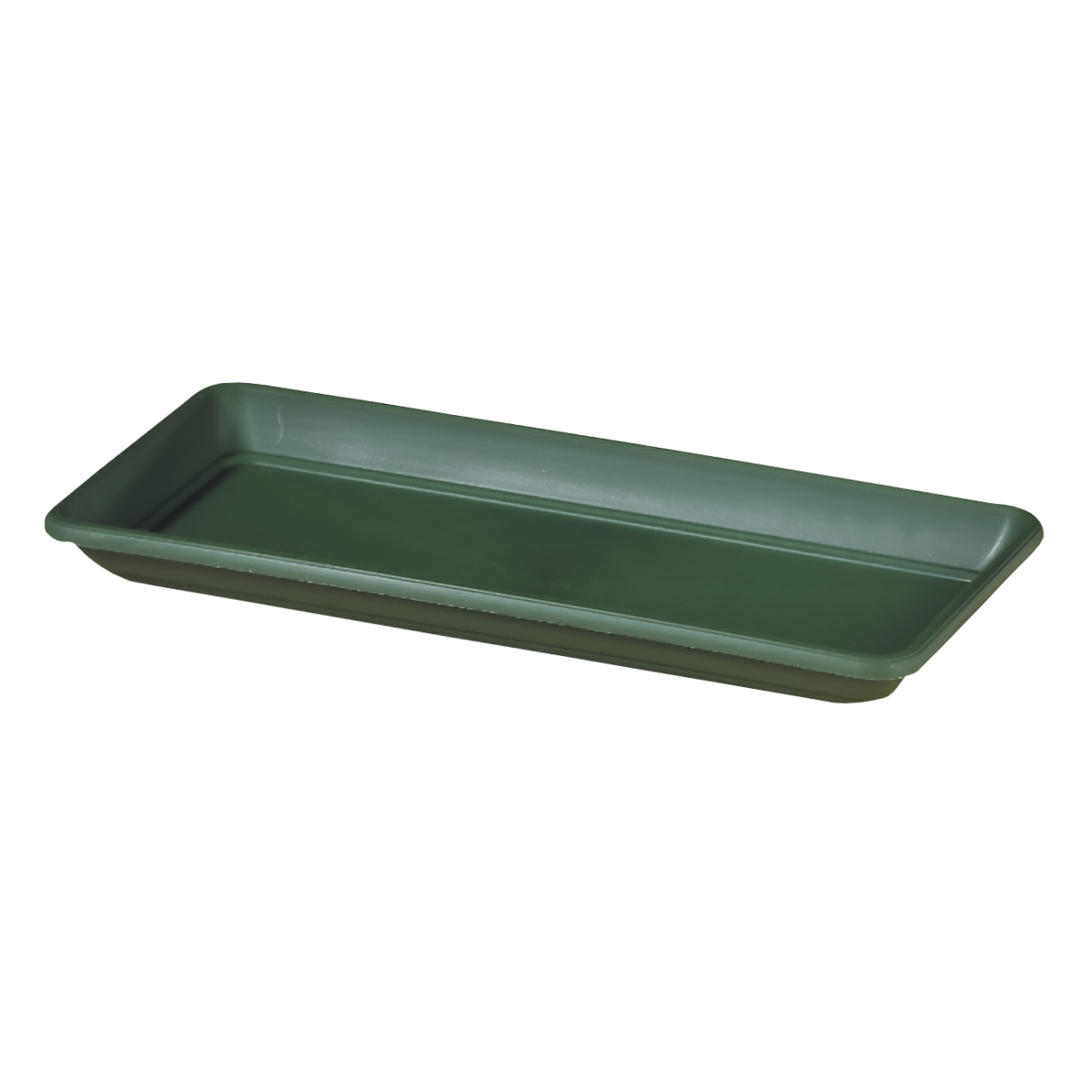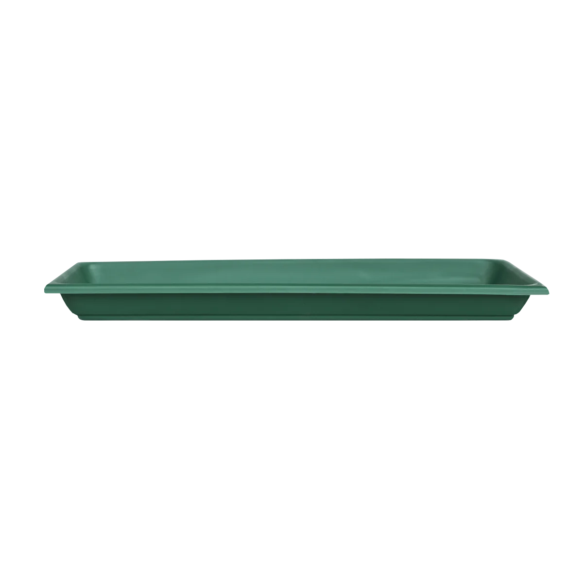 Zöld színű, letisztult dizájnú műanyag balkonláda alátét. Kültéri- és beltéri használatra egyaránt alkalmas. Könnyen tisztítható, nem fagyálló. Mérete: 80 cm x 17 cm x 4 cm.
