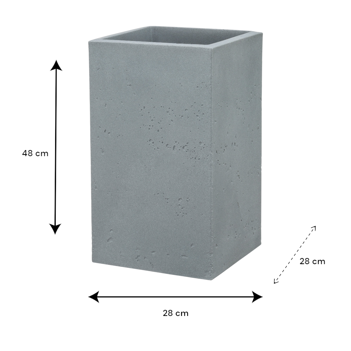 A C-Cube 28 cm átmérőjű, 48cm magas, szürke színű, szögletes műanyag kaspó letisztult formavilágával tökéletes választás modern terekhez. Egyenes vonalai és neutrális árnyalata jól illeszkedik teraszokra, erkélyekre, vagy akár bejáratok mellé is, emelve a környezet rendezett megjelenését.