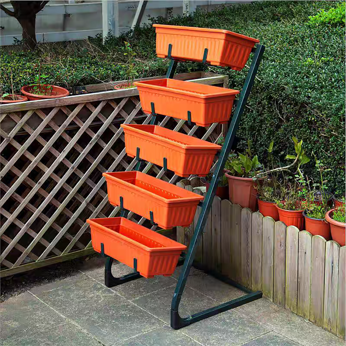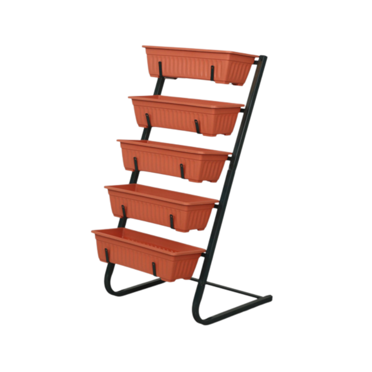 A vas tartóváz megfelelő tartást nyújt, a könnyű, időjárásállóbb polipropilén (PP) virágládák pedig ellenállnak az esőnek. Egyszerűen tisztítható, jól szellőző, tartós szerkezet, amely a mindennapi használat során is megbízható marad.