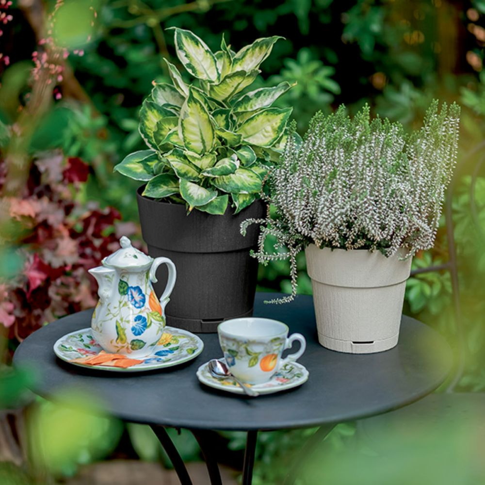 Ethica műanyag kaspó – 30 cm, grafit, önöntöző rendszerrel