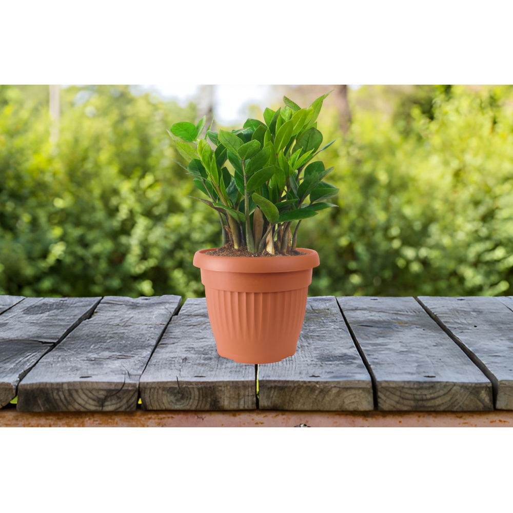 Firenze műanyag virágcserép. Klasszikus dizájnú, bordázott oldalfalú, terracotta színű. Minőségi, erős műanyagból készült így egyaránt alkalmas kültéri és beltéri használatra. Barnás színe miatt jól mutat minden kertben és teraszon. Sokféle méretezésének köszönhetően számos különféle növény számára szolgálhat ideális cserépként. Átmérő: 25 cm.