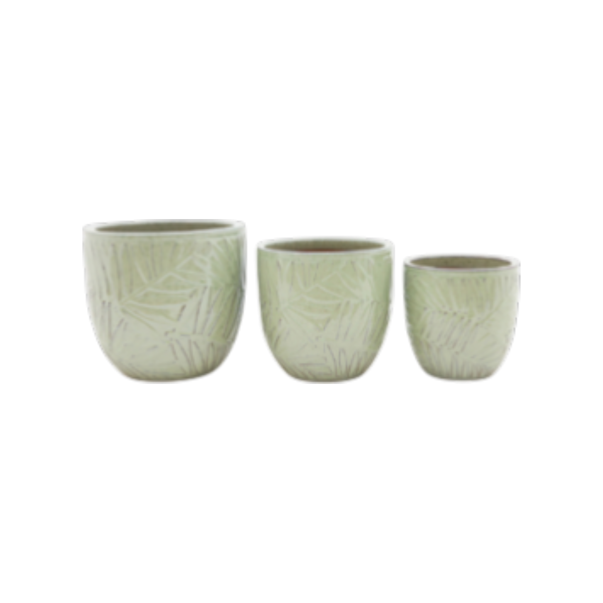 A legkisebb, 26×26,5 cm-es kaspó változat kiválóan használható kompakt növényekhez. A mázas levélmintás felület a természetet idézi, miközben jól illeszkedik letisztult, modern vagy bohém stílushoz is.