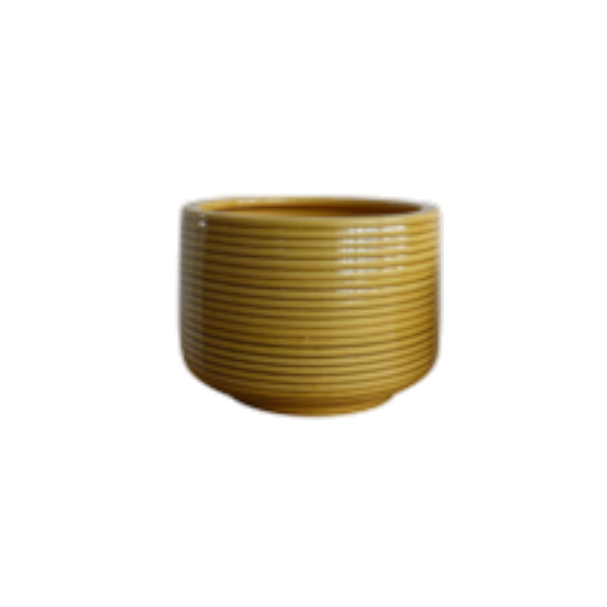 Sárgás árnyalatú, kerámiából készült, bordázott kaspó lyukas aljjal. Növényeid számára ideális környezetet biztosítanak és még az otthonodban is jól mutatnak, hiszen természetes szépséget és eleganciát kölcsönöznek.