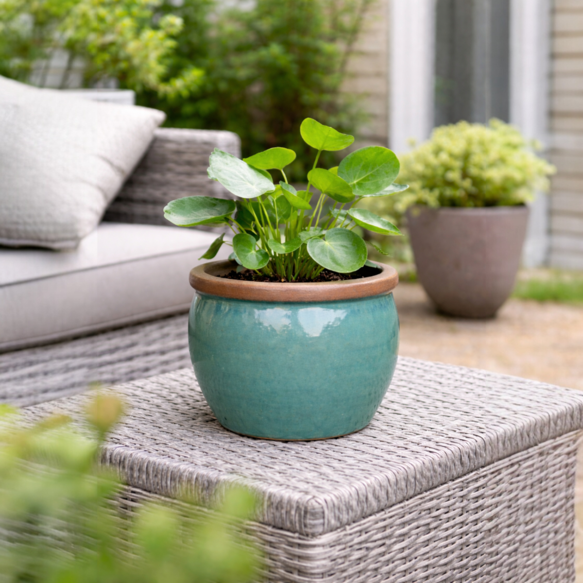 Ez a jade zöld színű kerámia kaspó elegáns, természetközeli árnyalatával tökéletesen illeszkedik modern és klasszikus környezetbe egyaránt. Letisztult formája kiemeli a benne elhelyezett növényeket, legyen szó beltéri dísznövényről vagy kültéri beültetésről.