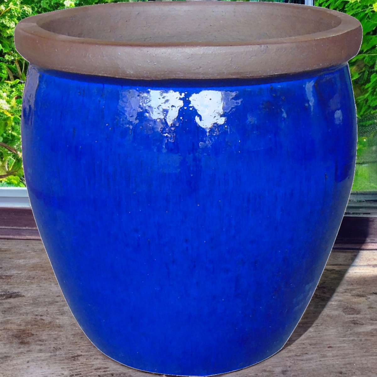 Kék színű kerámia kaspó.