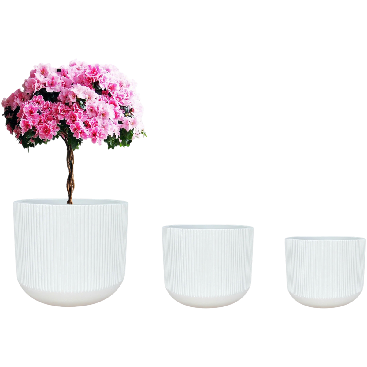 Ez a matt fehér, csíkozott felületű rostcement kaspó modern és letisztult megjelenést biztosít növényeid számára. A szálerősítésű beton szerkezet stabil, masszív kialakítást eredményez, miközben esztétikus kiegészítője lehet beltéri és kültéri tereknek egyaránt.