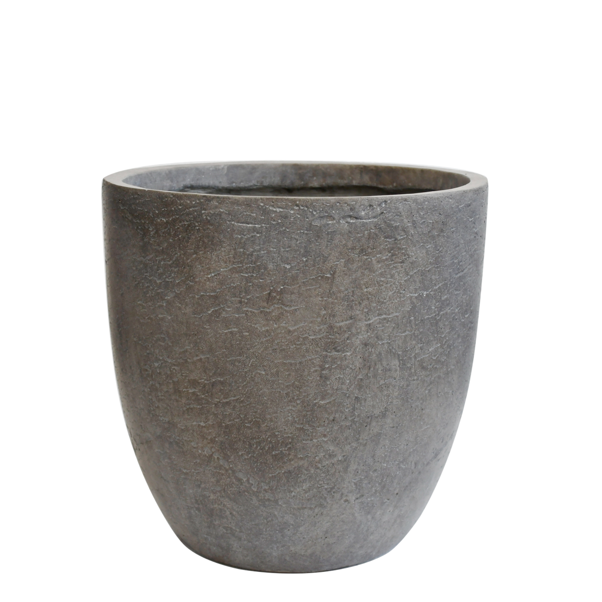 A kerek formájú, sötétszürke szálerősítésű beton kaspó nagyobb méretével és letisztult megjelenésével ideális választás hangsúlyosabb növények elhelyezésére. A masszív anyaghasználat stabil tartást biztosít, miközben a kerek forma harmonikusan illeszkedik különböző környezetekbe.