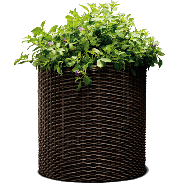 KETER VIRÁGTARTÓ L CYLINDER PLANTER RATTAN HATÁSÚ MŰANYAG BARNA 43X43X44,3CM