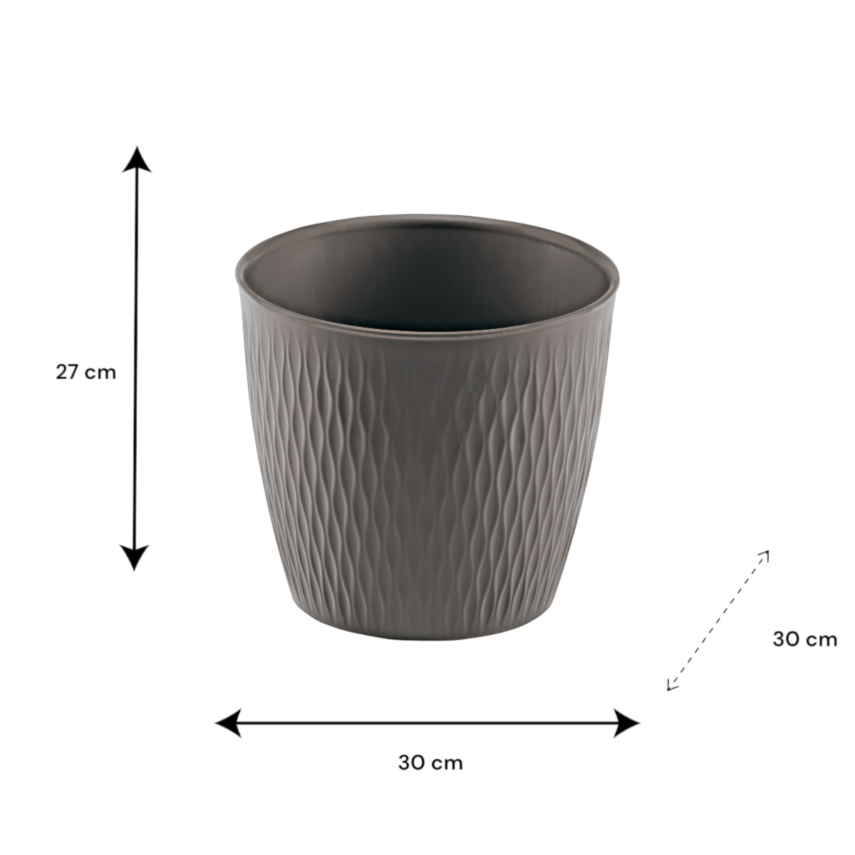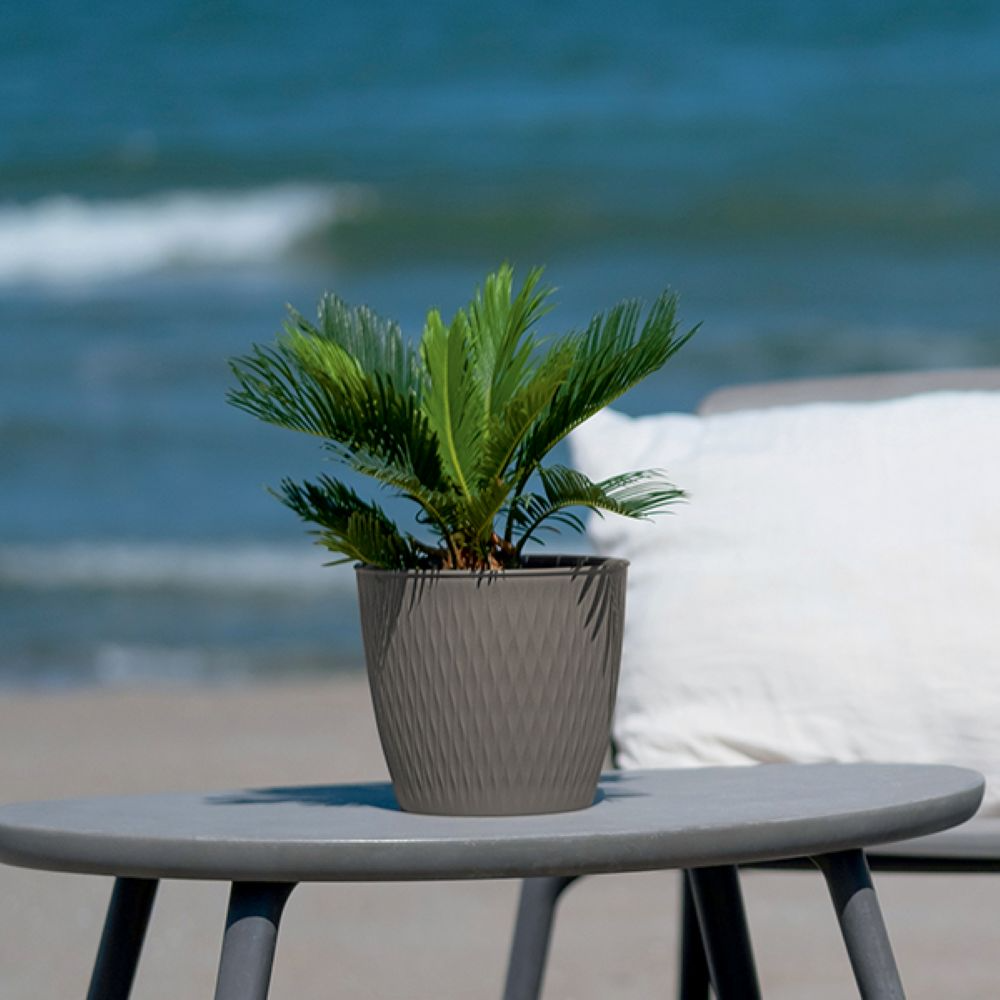 A Liberty szürke színű 30 cm-es műanyag kaspó praktikus és sokoldalú választás beltéri és kültéri növények számára egyaránt. Letisztult, neutrális megjelenése bármilyen enteriőrbe vagy erkélyre könnyen beilleszthető, miközben a könnyű, tartós műanyag kivitel egyszerű használatot és hosszabb élettartamot biztosít. Ideális virágok, dísznövények, kisebb fűszernövények ültetéséhez.