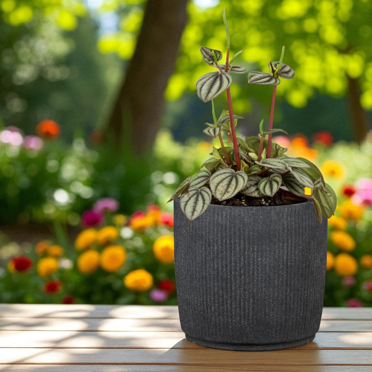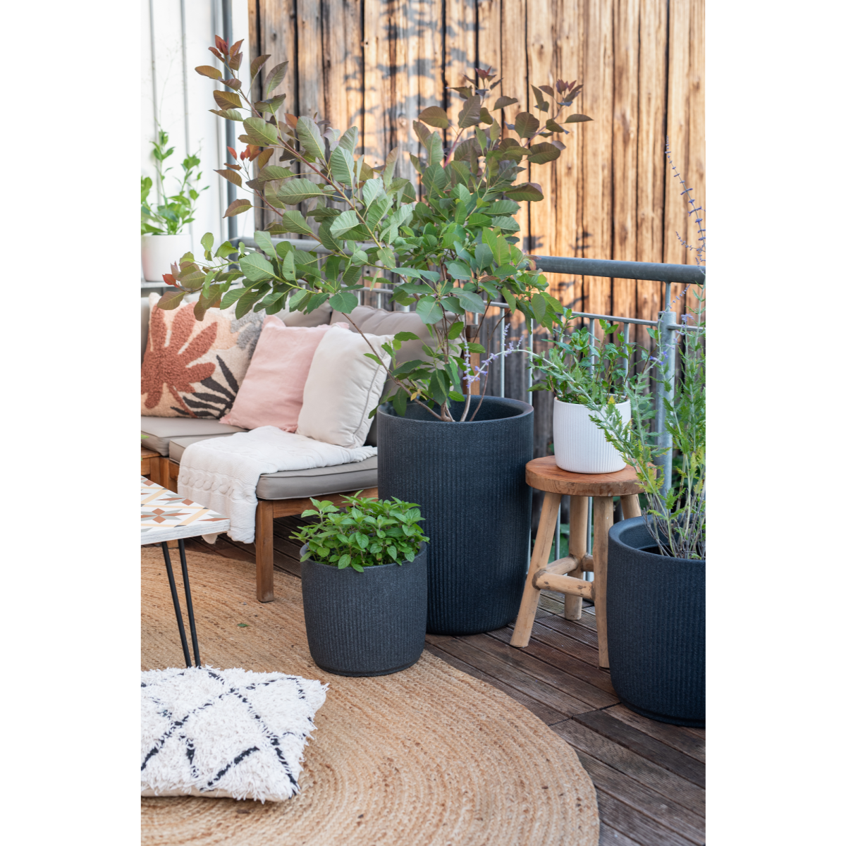 A Linetto fekete színű műanyag kaspó 40 cm-es átmérővel és strukturált felületével remekül illeszkedik a modern környezetekbe. Egyedi megjelenése lehetővé teszi, hogy növényeid kerüljenek a fókuszba, miközben a kaspó is dekoratív elemként funkcionál.