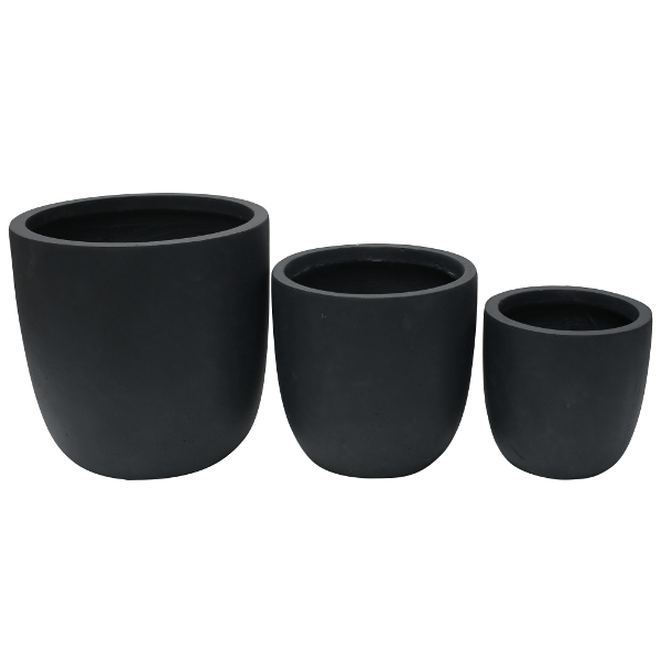 Agyag kaspó sötét szürke színben. Lukasztott alj. Mérete: 43x41 cm.