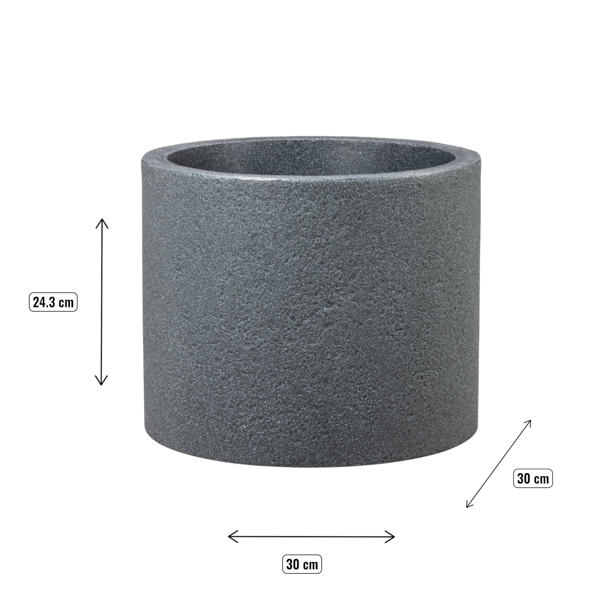 A Riva 30 cm-es fekete műanyag kaspó időjárásálló kialakításával és egyszerű, letisztult megjelenésével jól illeszkedik otthonod vagy teraszod bármely pontjára. Könnyű, mégis ellenálló anyaga lehetővé teszi a kültéri és beltéri használatot egyaránt, fagyállóságának köszönhetően pedig télen is biztonságosan használható.