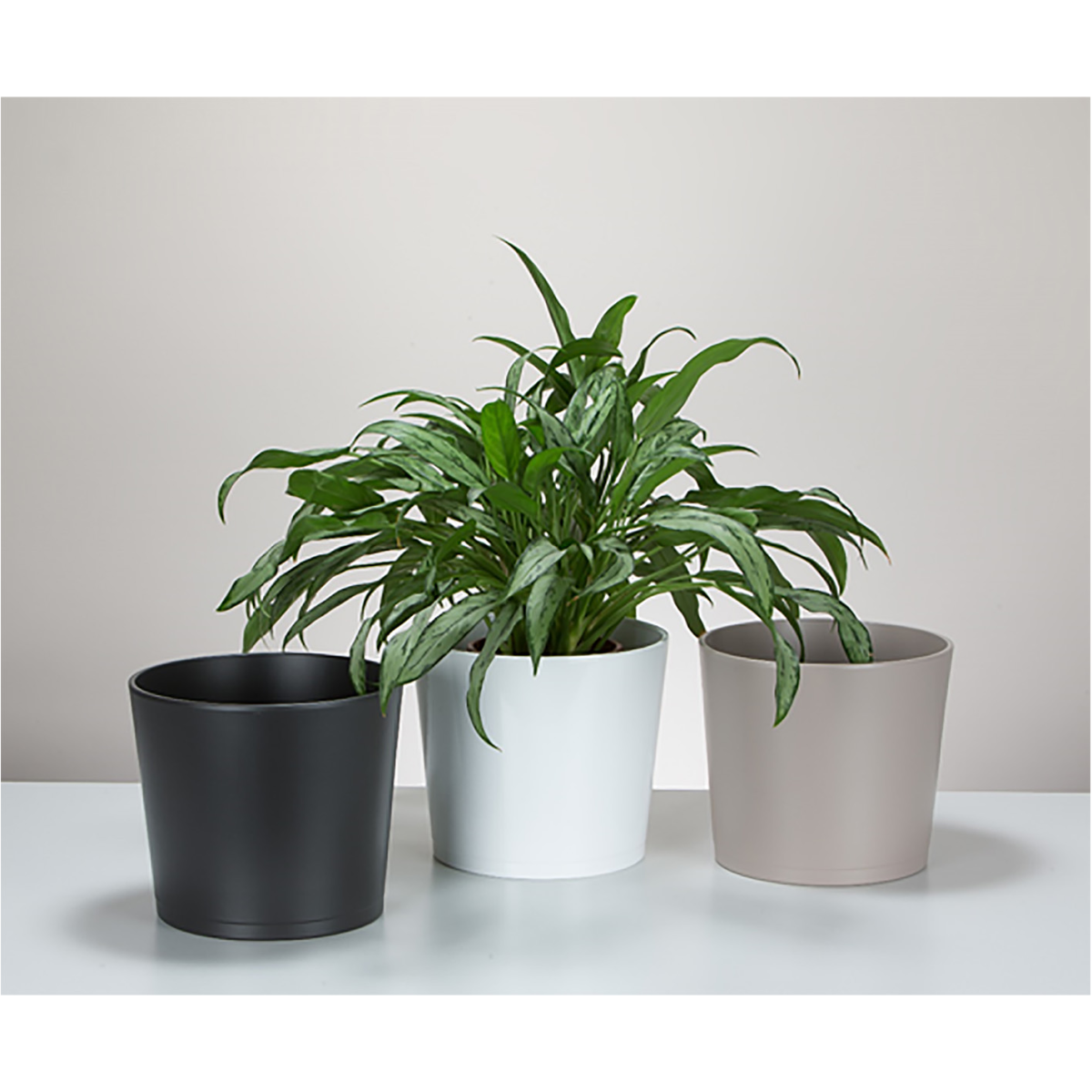 Prémium minőségű, vízálló kerámia kaspó, beltéri műanyag konténerben lévő növények tárolására alkalmas.