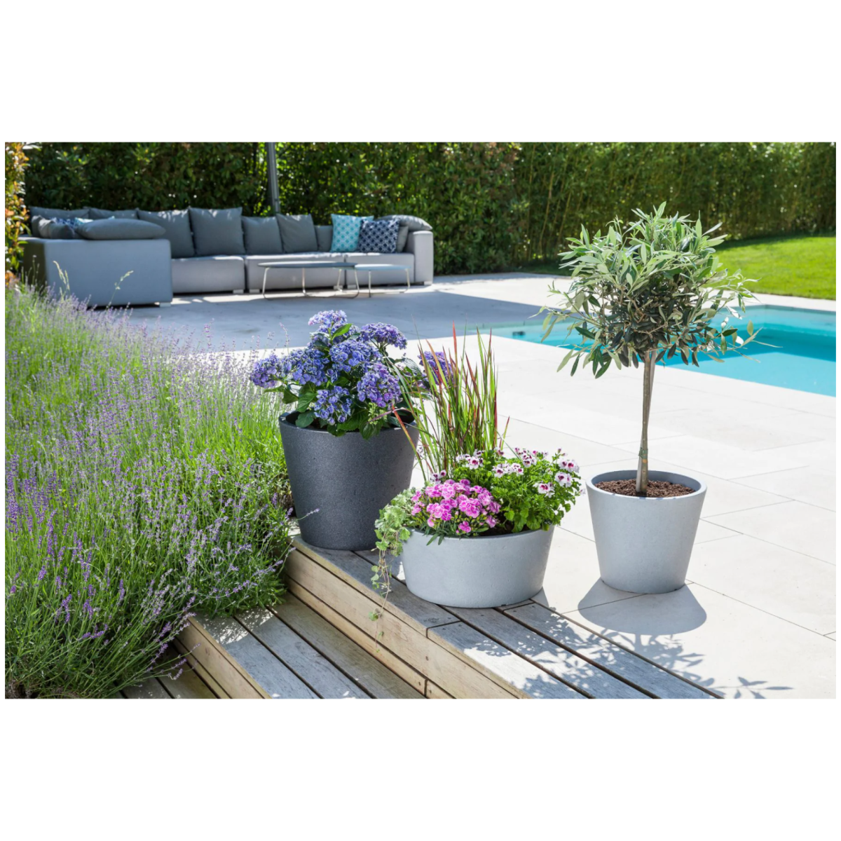 Scheurich műanyag kaspó 40 cm-es átmérővel kültéri növények számára. Alkosson tökéletes harmóniát otthona és a természet között ezzel a stílusos és modern kültéri kaspóval. Könnyű, mégis tartós anyagának köszönhetően ideális választás minden kertbe. Állítsa ki növényeit elegánsan, miközben biztosítja számukra a megfelelő támogatást és védelmet az időjárás hatásaival szemben. A kaspóban felgyülemlett túlzott vízmennyiség a kaspó alján elhelyezkedő vízlefolyóval könnyen leereszthető így védve a növényt a túlöntözéstől. Külső mérete: 33.2 cm x 38.6 cm x 38.6 cm. Belső mérete: 32.5 cm x 34.7 cm x 34.7 cm.