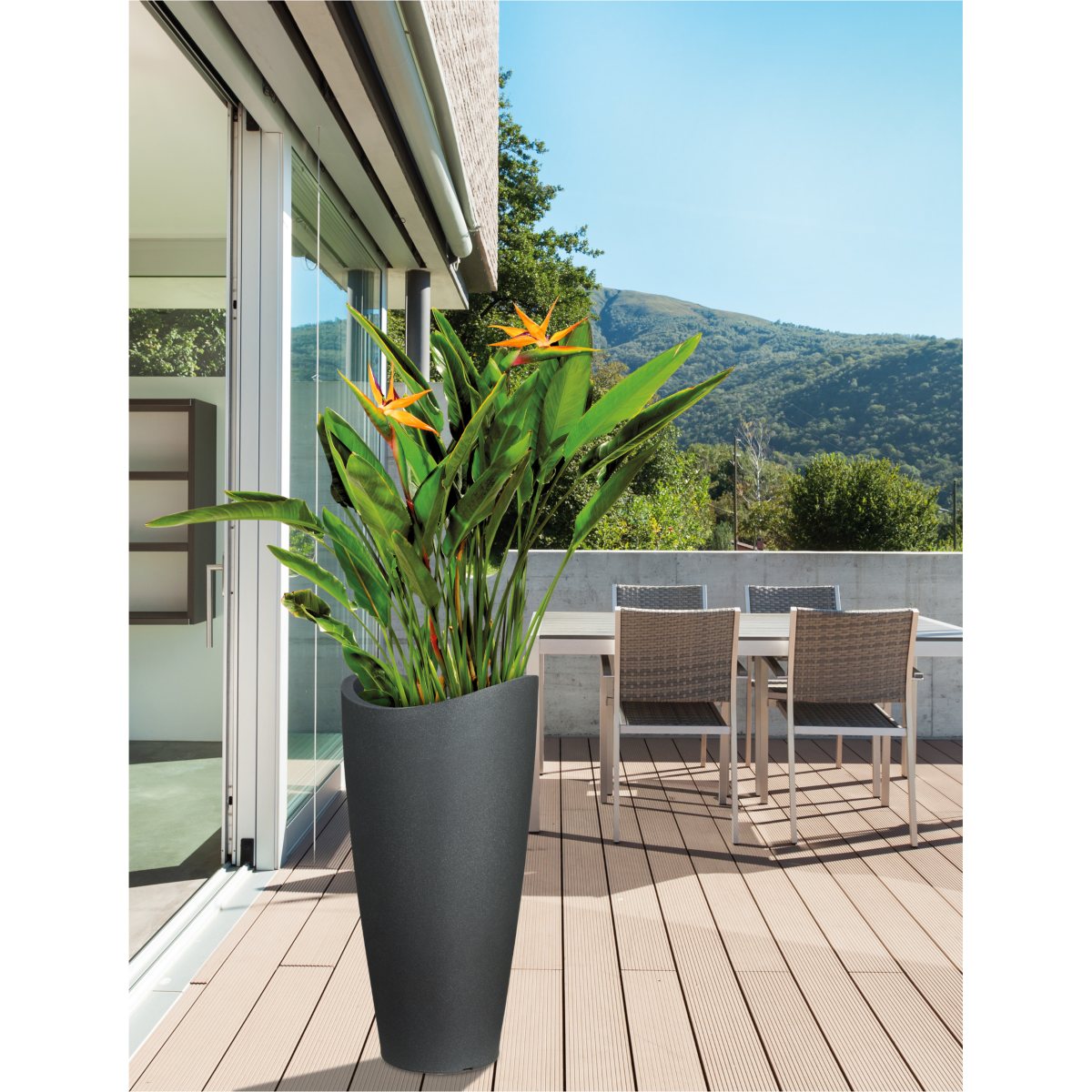 Scheurich műanyag kaspó 54 cm-es magassággal, 40 cm átmérővel kültéri növények számára. Alkosson tökéletes harmóniát otthona és a természet között ezzel a stílusos és modern kültéri kaspóval. Hullámos és magas kialakítása újdonságnak számít a kaspók között. Természetes kő behatású fekete színével tökéletesen illik a kerti színvilágba. Állítsa ki növényeit stílusosan, miközben biztosítja számukra a megfelelő támogatást és védelmet az időjárás hatásaival szemben. A kaspóban felgyülemlett túlzott vízmennyiség a kaspó alján elhelyezkedő vízlefolyóval könnyen leereszthető így védve a növényt a túlöntözéstől. Mérete: 54 cm x 40 cm x 40 cm.