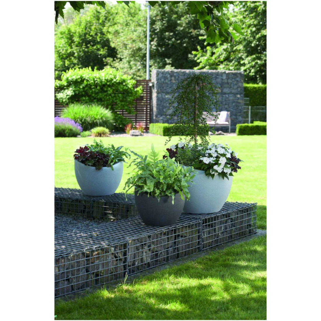 Scheurich műanyag kaspó 40 cm-es átmérővel kültéri növények számára. Adjon növényeinek tekintetvonzó megjelenést ezzel a hullámos dizájnú kaspóval. Természetes kő behatású fekete színével tökéletesen illik a kerti színvilágba. Állítsa ki növényeit stílusosan, miközben biztosítja számukra a megfelelő támogatást és védelmet az időjárás hatásaival szemben. A kaspóban felgyülemlett túlzott vízmennyiség a kaspó alján elhelyezkedő vízlefolyóval könnyen leereszthető így védve a növényt a túlöntözéstől. Mérete: 29.7 cm x 40 cm x 40 cm.