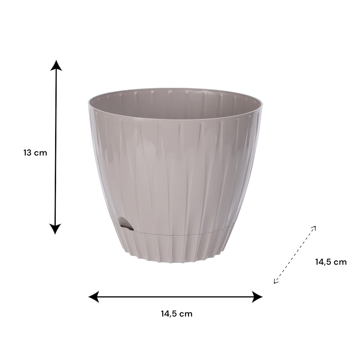 Ez a 13×14,5×14,5 cm-es műanyag virágcserép alátéttel ideális választás mindazoknak, akik egyszerre keresnek praktikus és esztétikus megoldást növényeik számára. Letisztult formavilága és visszafogott színei könnyedén illeszkednek bármilyen környezetbe, legyen szó modern lakásról, teraszról vagy kertiről.