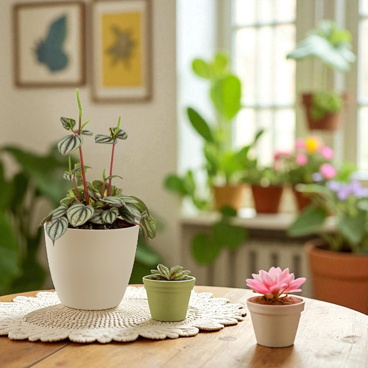 🌼 Kisebb cserepes növények stílusos elhelyezésére