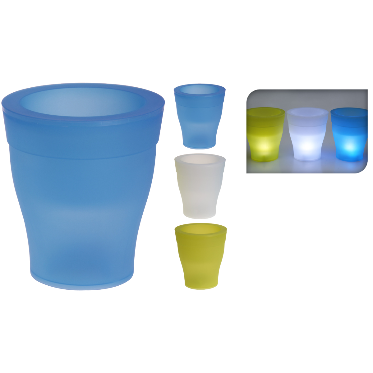 LED-es virágtartó. Mérete: 17x19,5 cm, 3 db AA elemmel működik, mely nem tartozék. Anyaga: műanyag.