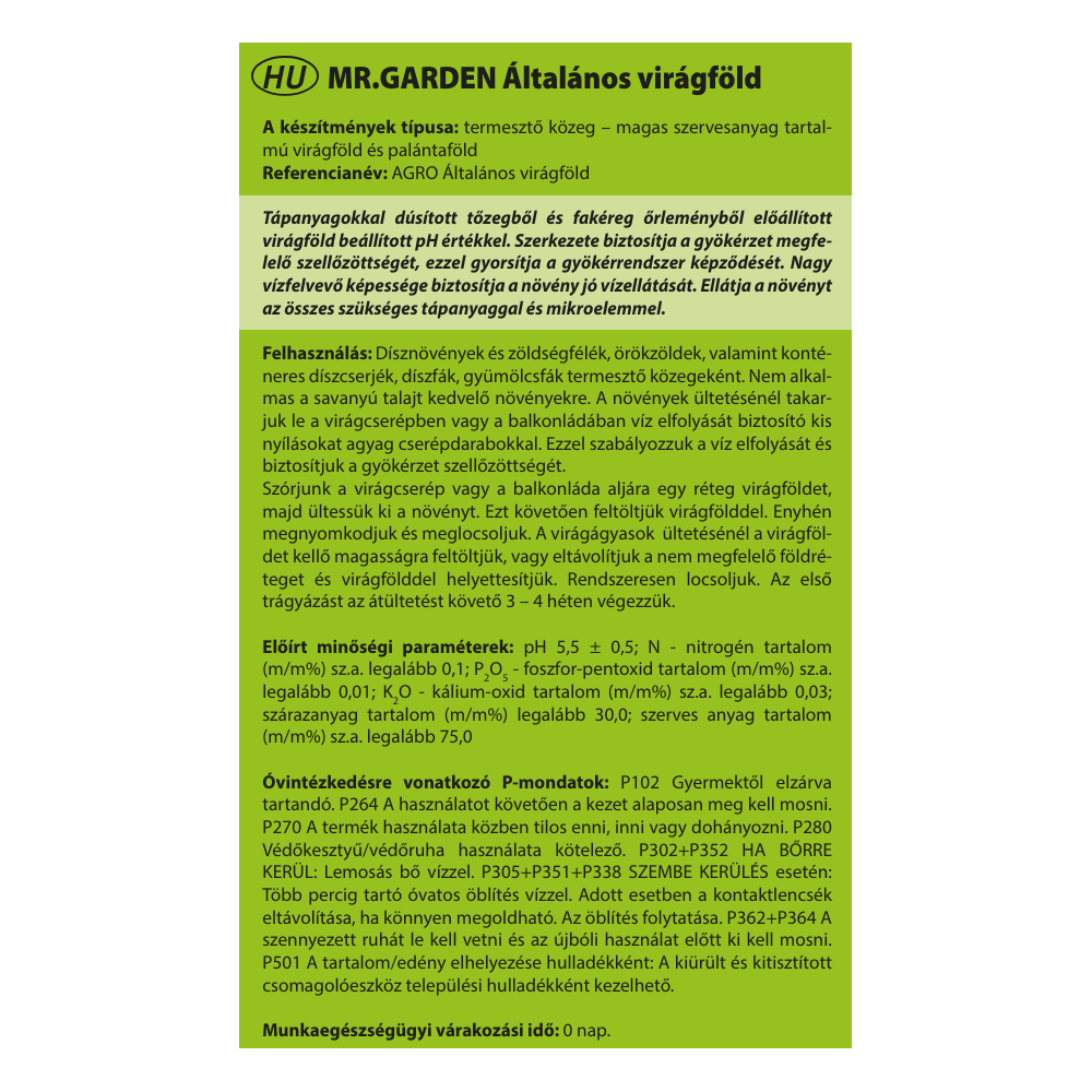 Szerkezete biztosítja a gyökérzet megfelelő szellőzöttségét. Nagy vízfelvevő képessége biztosítja a növény jó vízellátását. Ellátja a növényt az összes szükséges tápanyaggal és mikroelemmel. Virágok kiültetésénél erkély-, ill. ablak virágládákba, mobilzöldeknél, díszbokrok, cserjék, fák kiültetésénél. Összetétel: tápanyagokkal dúsított tőzegből előállított virágföld beállított pH értékkel. Az életképek tájékoztató jellegűek!