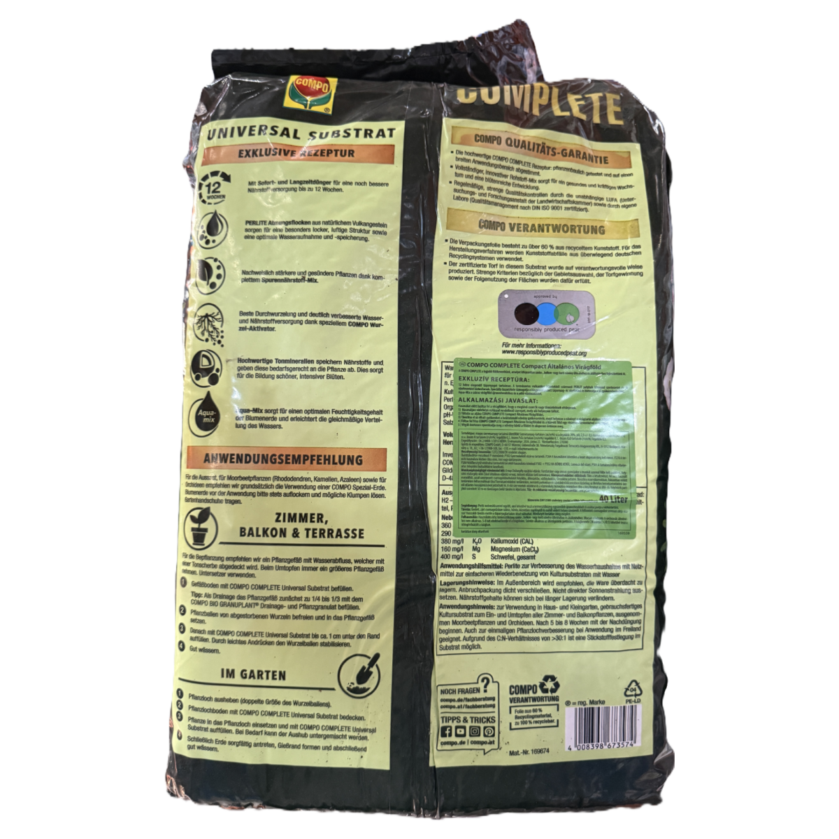 A Compo Complete virágföld ideális választás beltéri, balkon- és kerti növények ültetéséhez.