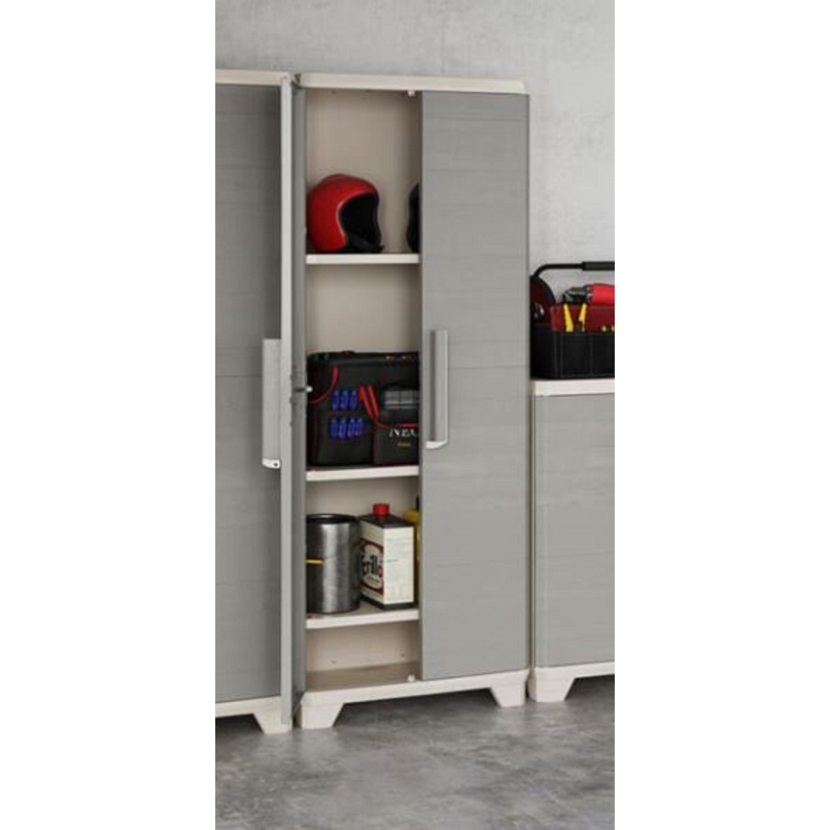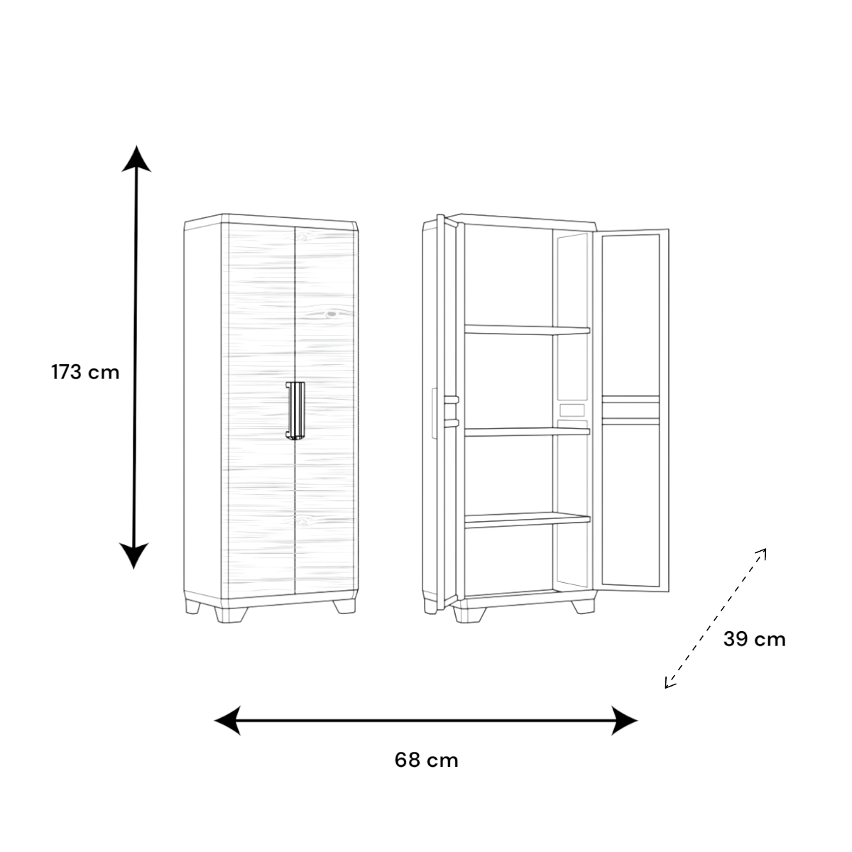 A Linear Wood Tall tárolószekrény stílusos és praktikus megoldás otthoni vagy garázsbeli rendszerezéshez. Műanyag anyaga ellenáll az időjárási hatásoknak és könnyen tisztítható, így akár beltéri, akár fedett kültéri használatra is ideális. Karcsú, magas kialakítása miatt kevés helyet foglal, mégis bőséges tárolókapacitást nyújt.