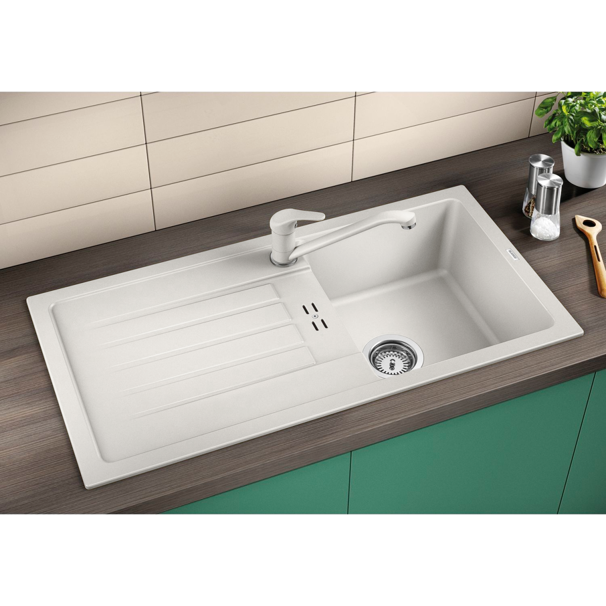 A BLANCO FAVUM 45S SILGRANIT mosogató letisztult formavilágával és elegáns fehér színével világos, modern megjelenést kölcsönöz a konyhának. Kompakt kialakítása praktikus megoldást kínál kisebb és közepes méretű konyhákba is.