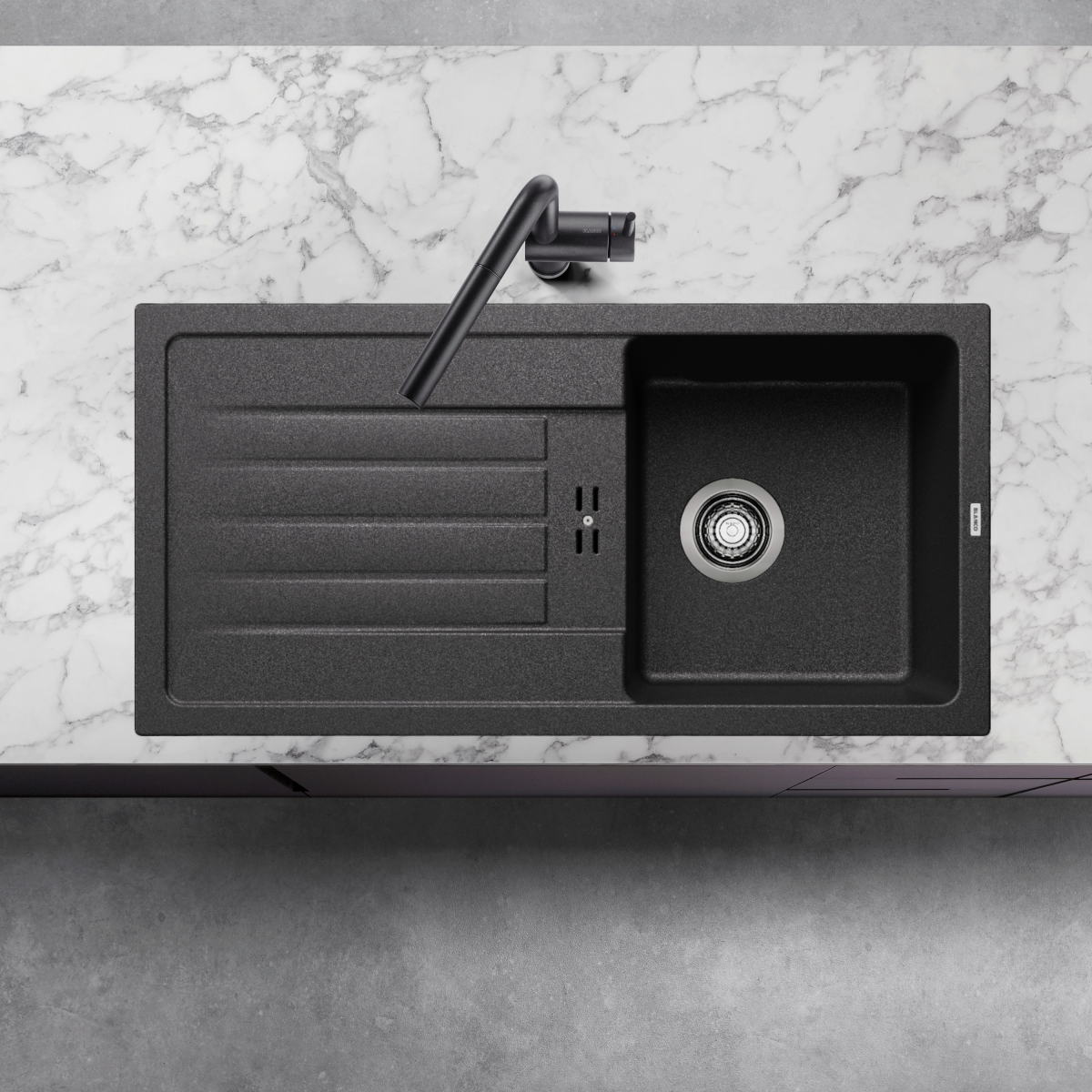 Az egymedencés kialakítás praktikus megoldást kínál, míg a lefolyós csepptálca segíti a víz elvezetését és tisztán tartja a munkafelületet. A harmonikusan integrált túlfolyó növeli a medence hasznos térfogatát, a helytakarékos lefolyórendszer pedig több tárolóhelyet hagy a mosogató alatti szekrényben. A prémium SILGRANIT anyag rendkívül ellenálló, karcálló és hőálló, emellett könnyen tisztítható és higiénikus.