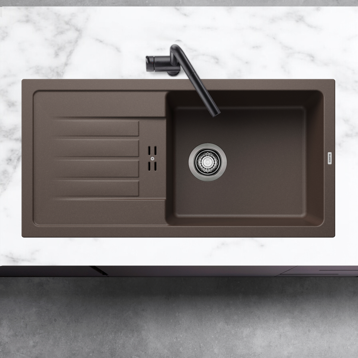 A BLANCO FAVUM XL 6S mosogató modern, letisztult formavilágával és praktikus kialakításával ideális választás a mai konyhákba. A kávé szín elegáns, meleg árnyalatot kölcsönöz a térnek, amely harmonikusan illeszkedik világos és sötétebb munkalapokhoz is.