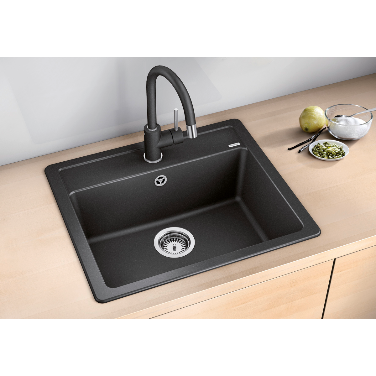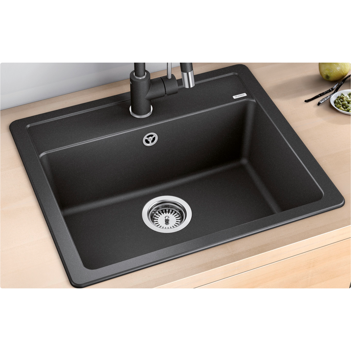 A Blanco Legra 6 egy antracit színű, egymedencés mosogató, amely Silgranit anyagának köszönhetően ellenállóbb és hosszabb élettartamú felületet biztosít. A 58,5×50 cm-es méret kompakt kialakítást nyújt, 19 cm-es mélysége pedig kényelmes mosogatást tesz lehetővé. A felület vízlepergető és karcálló, ellenáll a háztartási savaknak és lúgoknak, valamint 280 °C-ig hőálló, így alkalmas a mindennapi konyhai használatra.