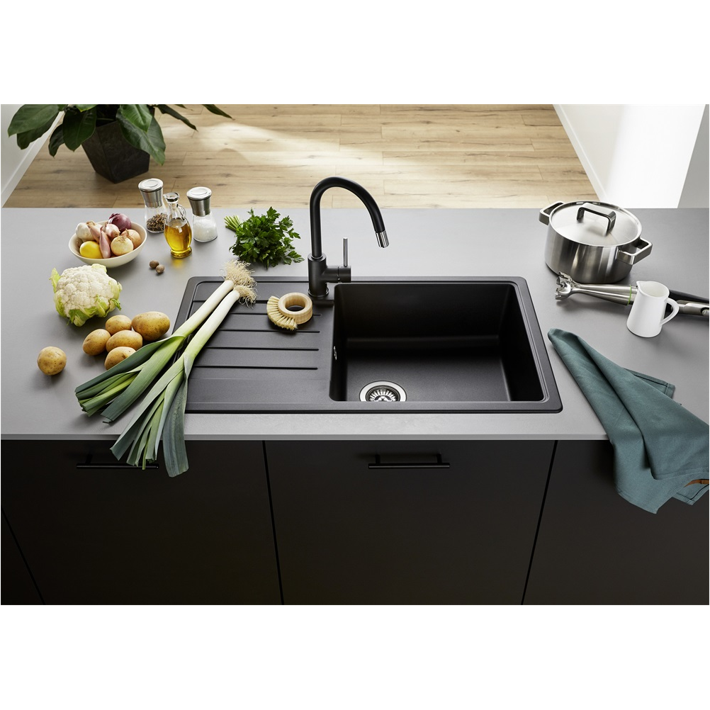 Az XL méretű, egymedencés kialakítás kényelmes munkateret biztosít a nagyobb edények, tepsik tisztításához is. A praktikus csepptálca segíti a lecsöpögő víz elvezetését, így tisztább és rendezettebb marad a munkafelület. A kávé szín meleg, harmonikus árnyalatával elegáns kiegészítője lehet világos vagy sötét konyhabútoroknak is.