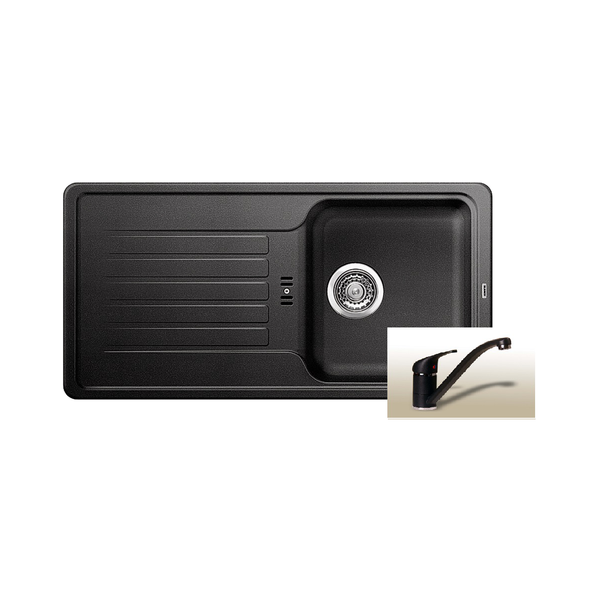 Mosogató "Blancofavos", csapteleppel, szilgránit, mérete: 78x43,5x18cm, beépíthető, egy medencés, csepptegető tálcával és szűrőkosaras lefolyóval 3,5".