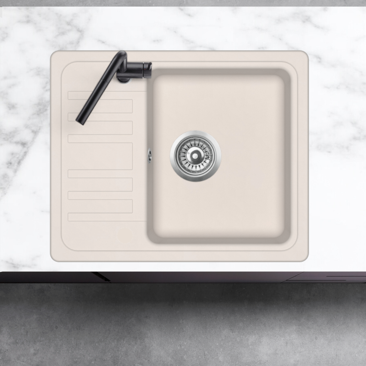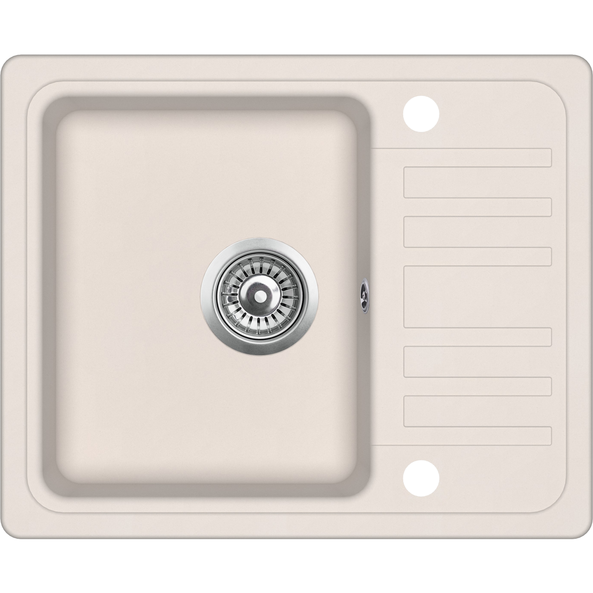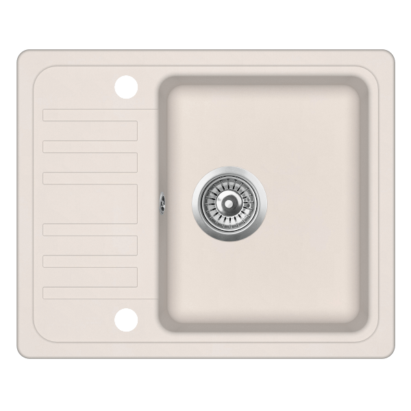Evido Home 45S compact gránit egy medencés, csepegtetőtálcás mosogató, bézs színben; lefolyóméret:3,5". Forgatható elrendezés, hagyományos beépítés felülről, két csaplyukkal, 45 cm-es szekrényméret; Alaptartozék:lefolyógarnitúra, csaplyuk takaró; a bűzelzáró szifon nem alaptartozék.