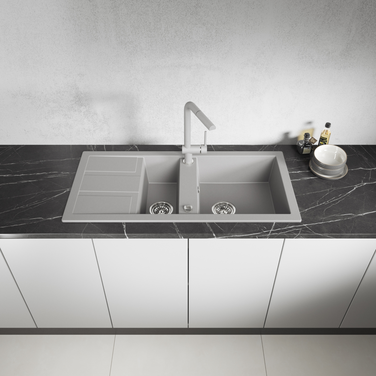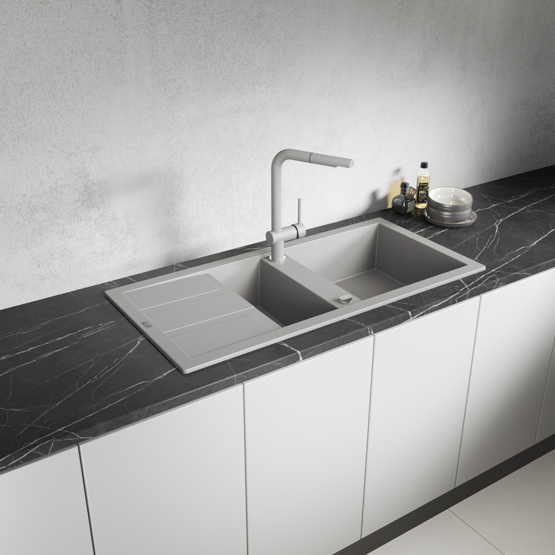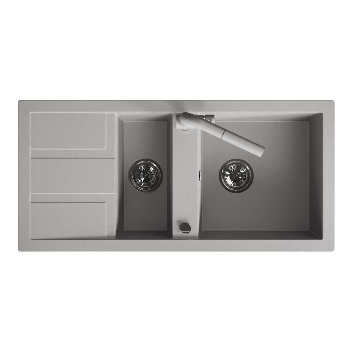 A Kuchinox Laveo Barbados 1,5 medencés, csepptálcás gránit mosogató kiváló választás nagyobb konyhákba, ahol fontos a kényelmes, rendezett munkafelület. A 100×48 cm-es méret és az 1,5 medencés kialakítás lehetővé teszi, hogy mosogass, előkészíts és száríts egyszerre, miközben a szürke gránit modern, letisztult megjelenést ad a térnek. A csepptálca praktikus segítség a mindennapokban, a helytakarékos szifon pedig több tárolóteret hagy a mosogató alatt.