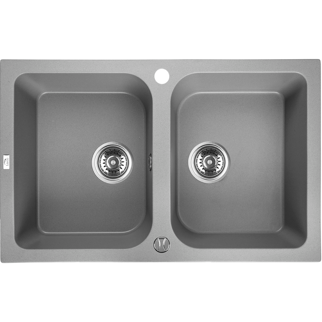 A Kuchinox Laveo Celia kétmedencés gránit mosogató praktikus és jól kihasználható megoldás olyan konyhákba, ahol fontos a párhuzamos munkavégzés és a nagyobb mosogatási felület. A 76×48 cm-es kialakítás két teljes méretű medencét biztosít, így egyszerre végezhető a mosogatás, öblítés vagy az ételek előkészítése. Modern, letisztult szürke színe harmonikusan illeszkedik világos és sötét konyhabútorokhoz egyaránt.