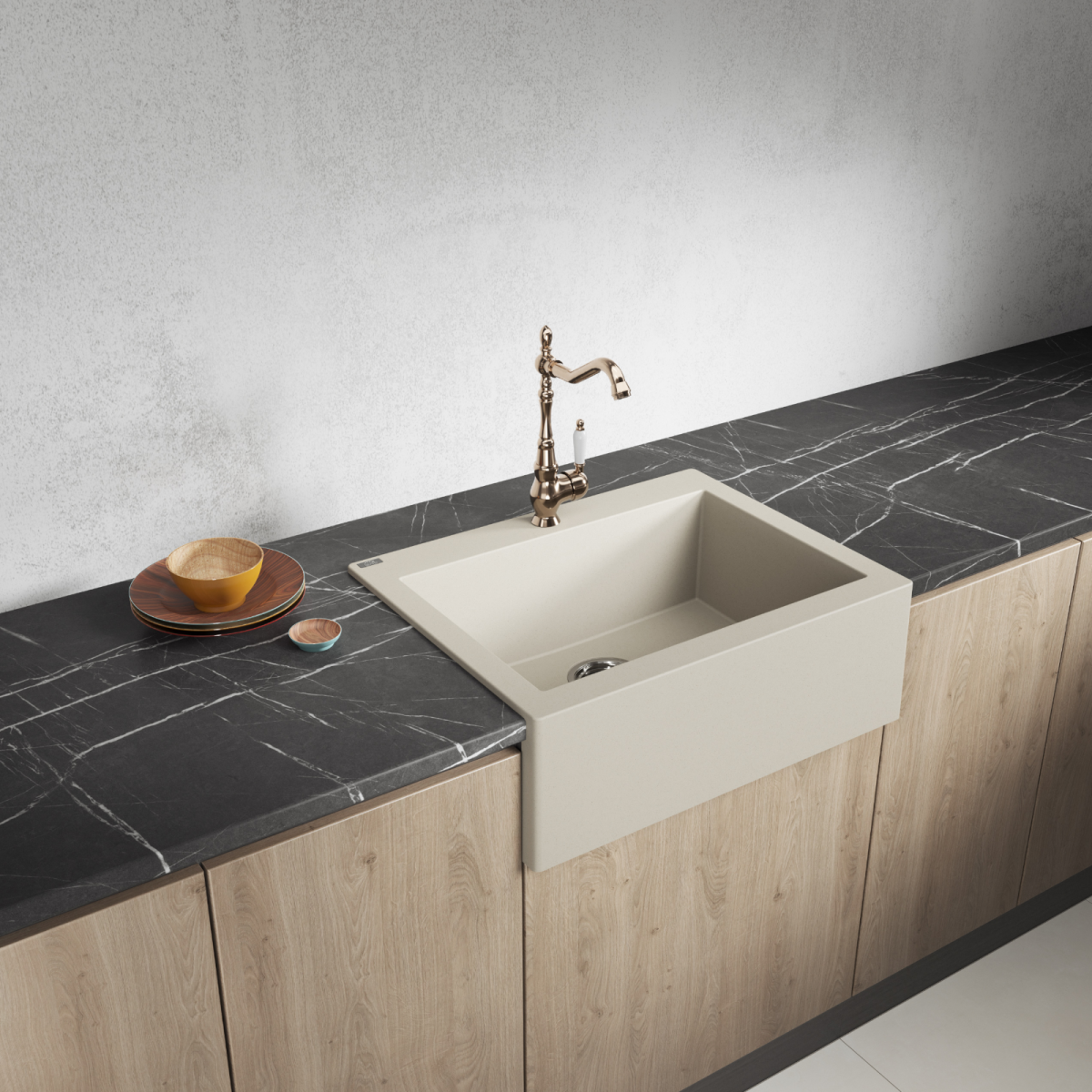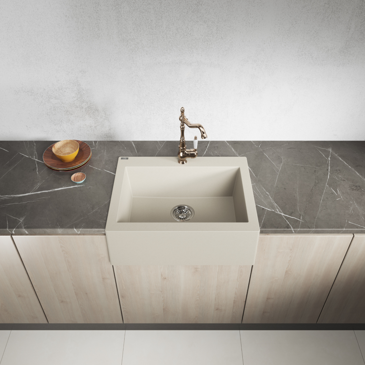 A Kuchinox Laveo Komodo gránit mosogató tartós, esztétikus és masszív kialakítású megoldás, amely jól illeszkedik modern és klasszikus konyhákba egyaránt. A bézs színű előlap különleges, vintage hatást kelt, miközben a mély medence kényelmes mindennapi használatot biztosít – akár nagyobb edények vagy tepsik mosogatásakor is. A mosogató formája és anyaga stabil, megbízható és hosszú távon is könnyen tisztán tartható.