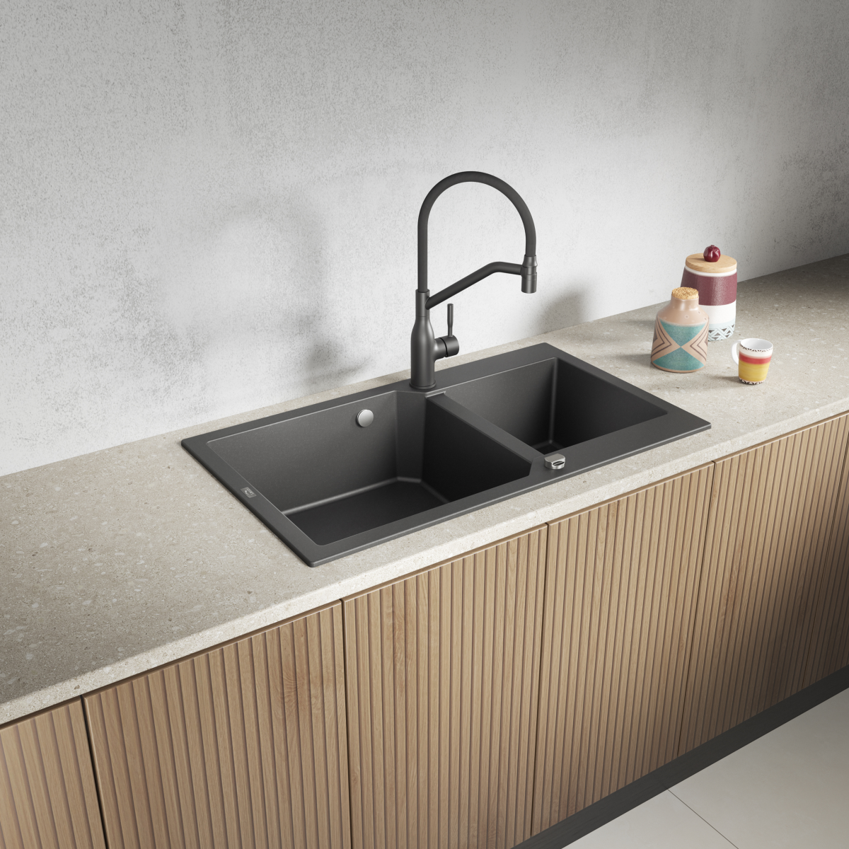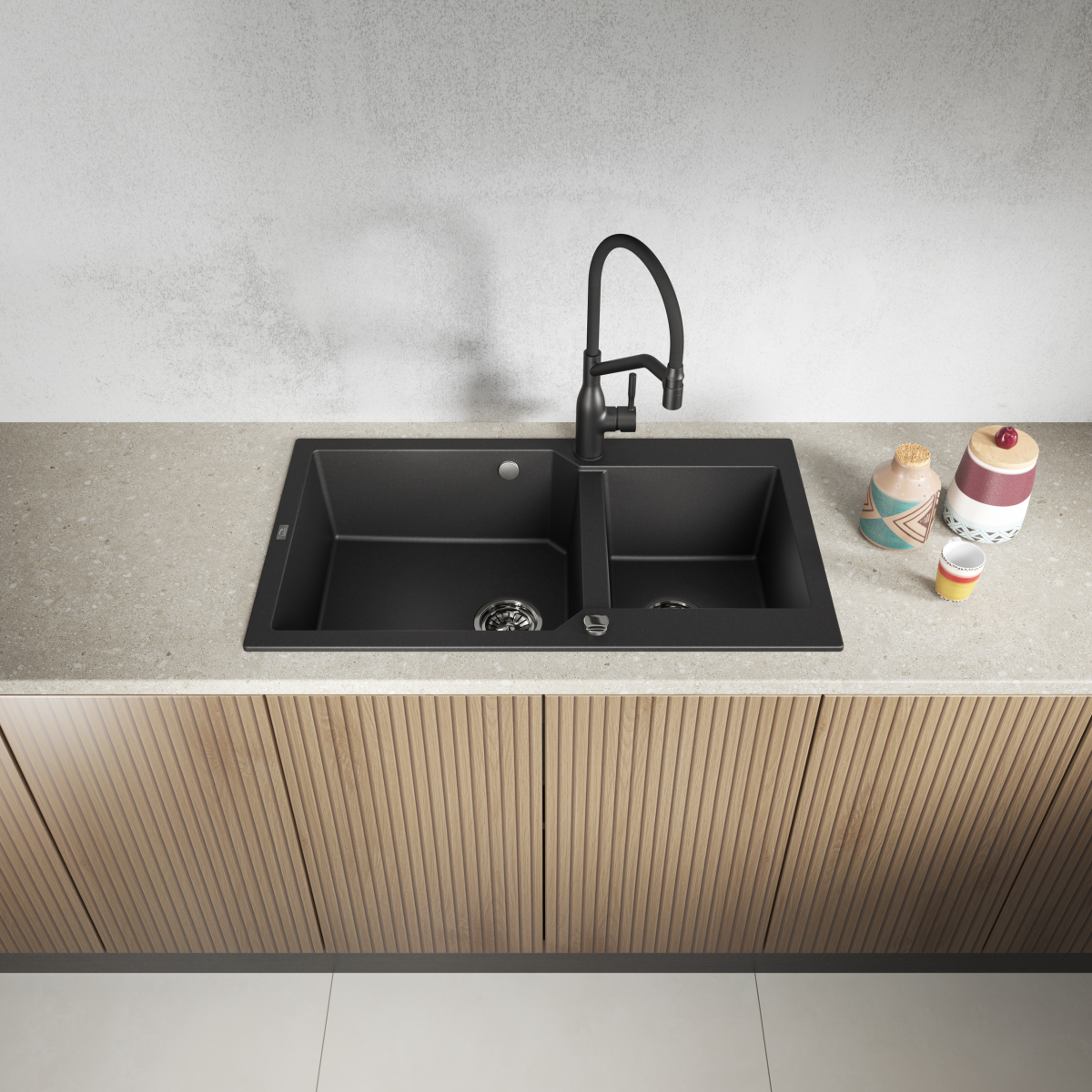 A Kuchinox Laveo Milos90 ideális választás, ha praktikus, kétmedencés, extra tágas gránit mosogatót szeretnél fekete színben, jól átgondolt kialakítással.