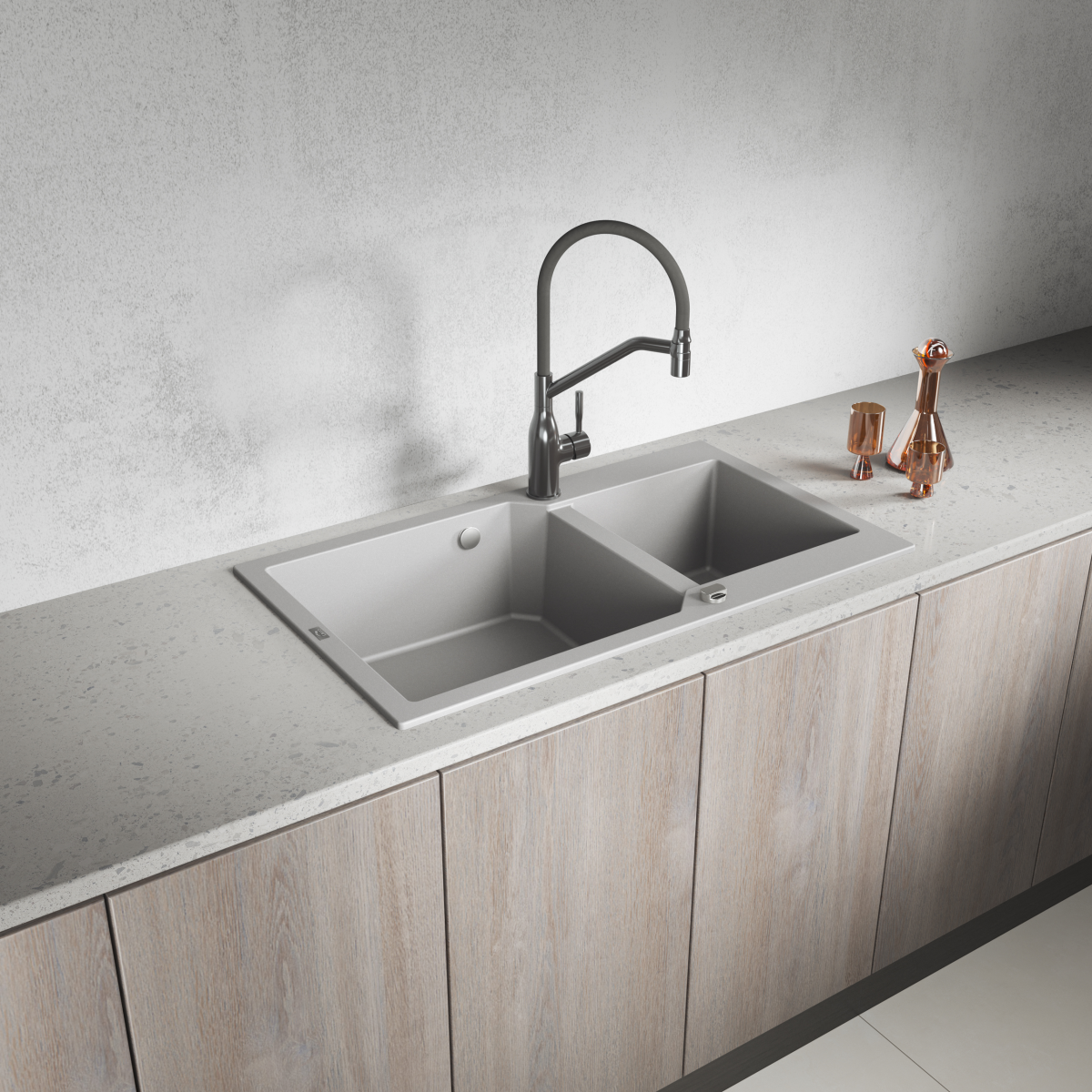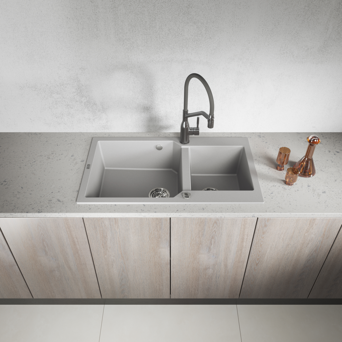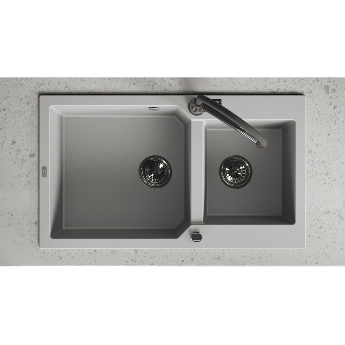 A Kuchinox Laveo Milos90 ideális választás, ha praktikus, kétmedencés, extra tágas gránit mosogatót szeretnél szürke színben, jól átgondolt kialakítással.