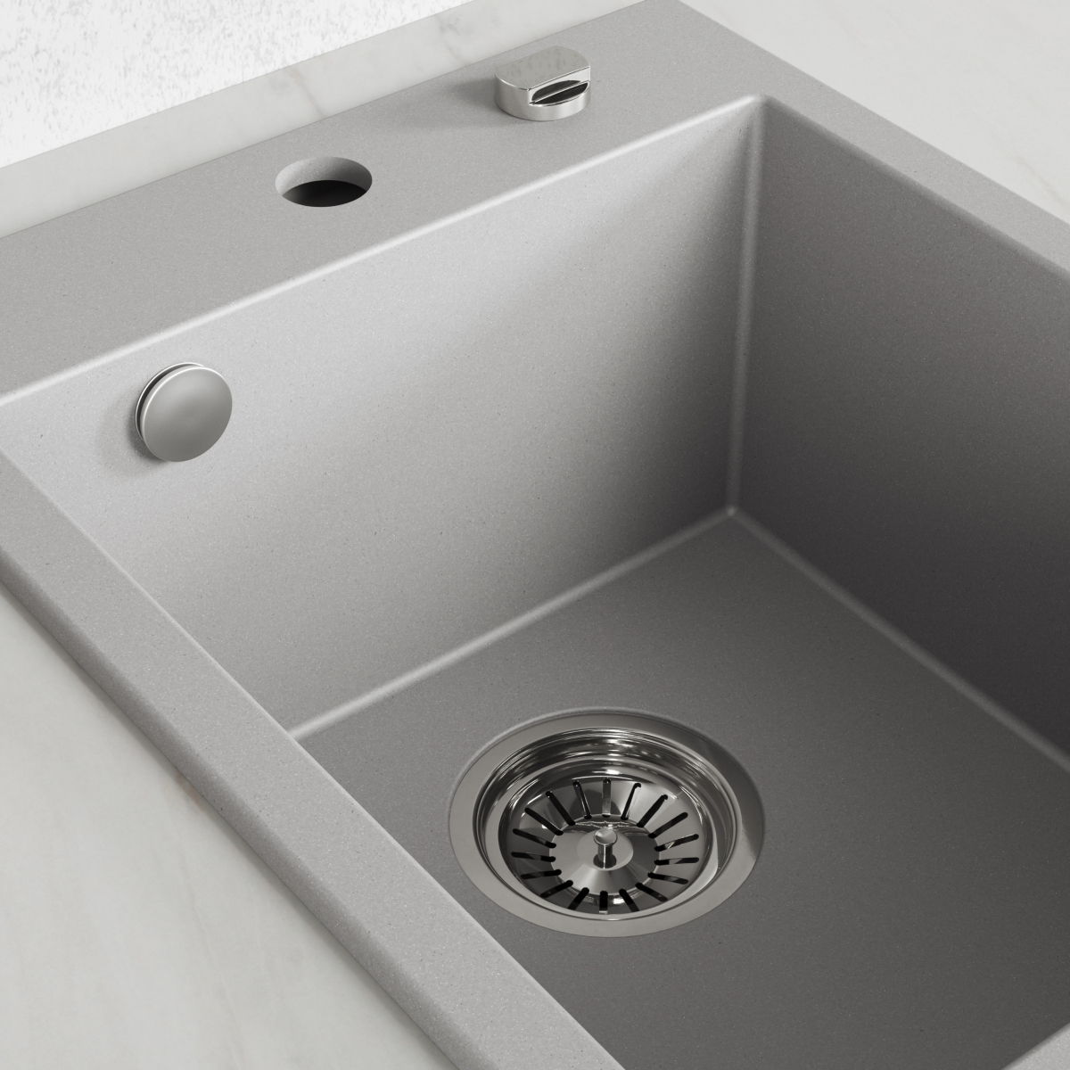 A szürke árnyalat elegáns és időtálló, a mély, 19 cm-es medence pedig kényelmes használatot biztosít mindennapi mosogatás során. A mosogató három csaplyukkönnyítéssel rendelkezik, így rugalmasan pozicionálhatod a csaptelepet vagy a kiegészítőket. A csomag részét képező helytakarékos szifon és a 3,5"-os szűrőkosaras lefolyó a praktikus telepítést és a hatékony vízelvezetést segíti.