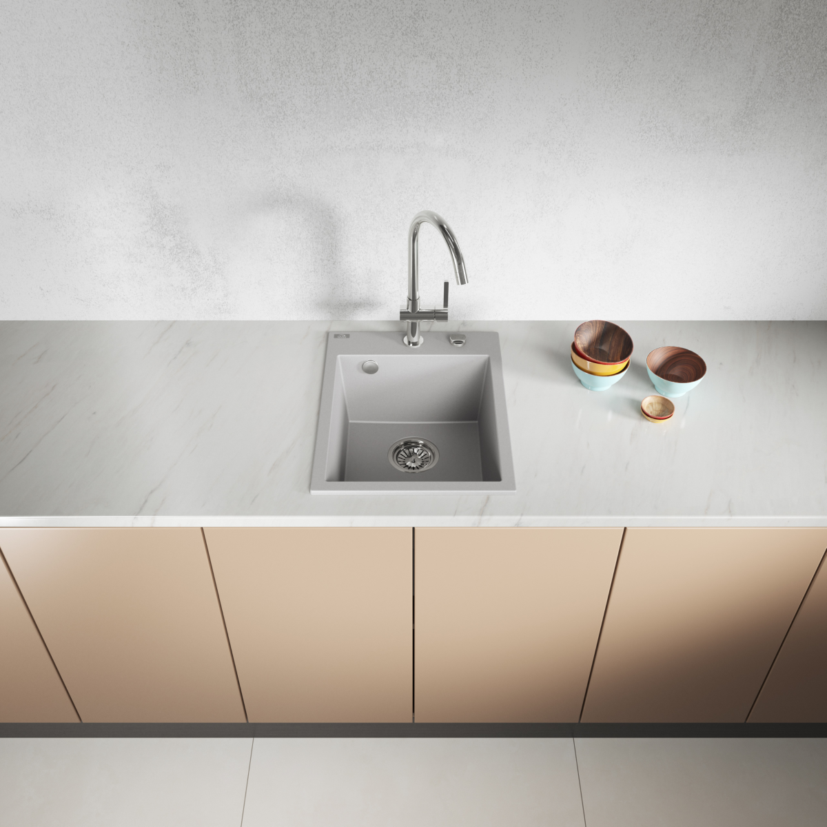 A Kuchinox Laveo Pico egymedencés gránit mosogató letisztult, modern formavilágával és praktikus méreteivel jól illeszkedik szinte bármilyen konyhába.