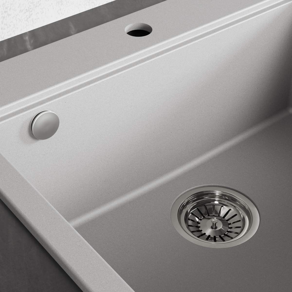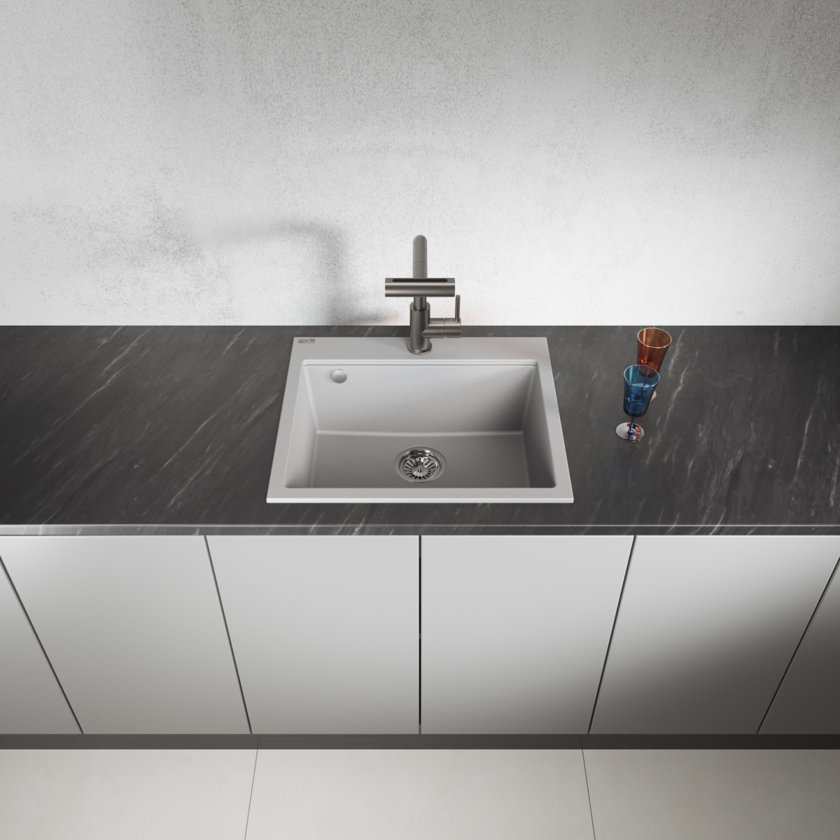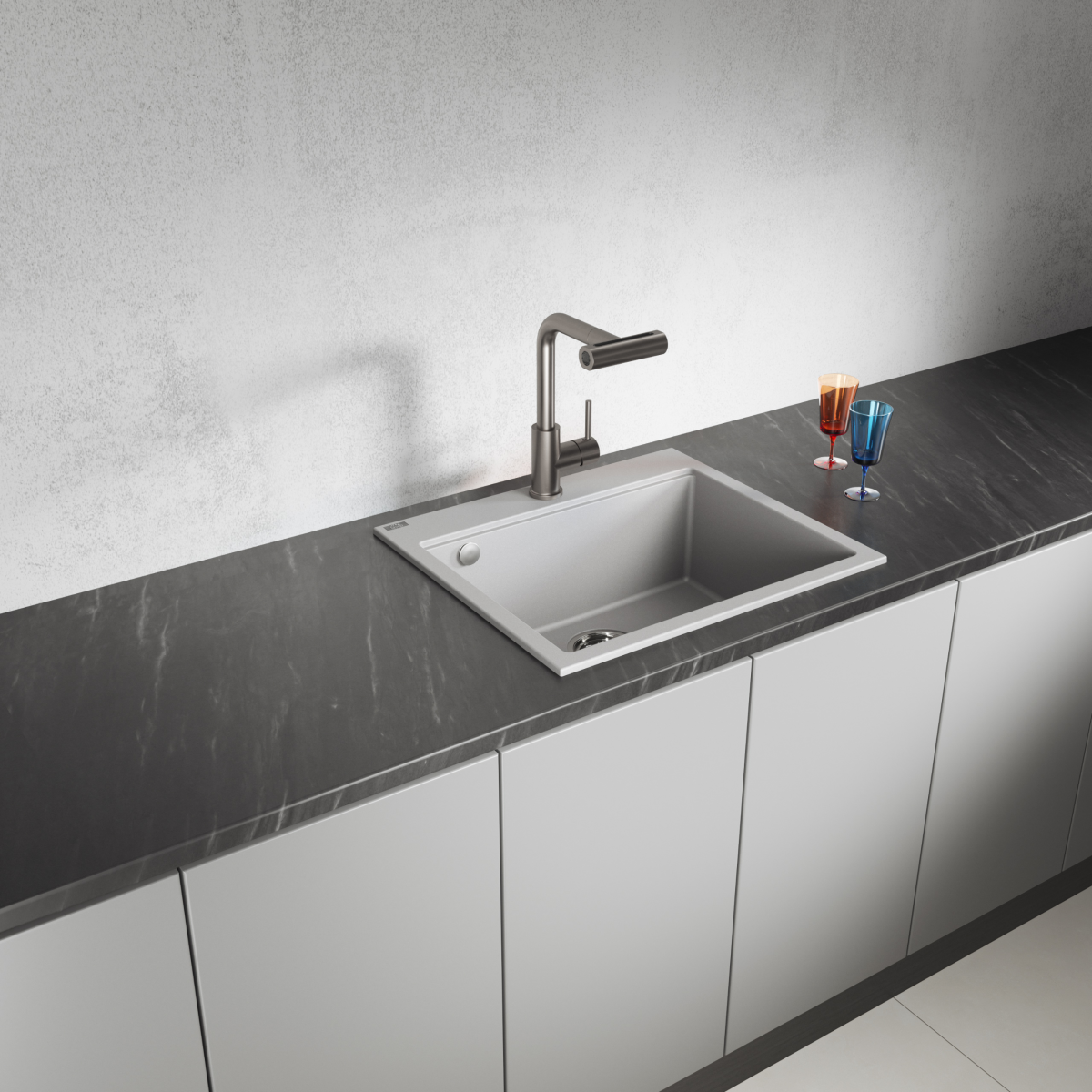 A Kuchinox Laveo Tau6 egy letisztult formavilágú, szürke gránit mosogató, amely jól illeszkedik modern és letisztult konyhákba.