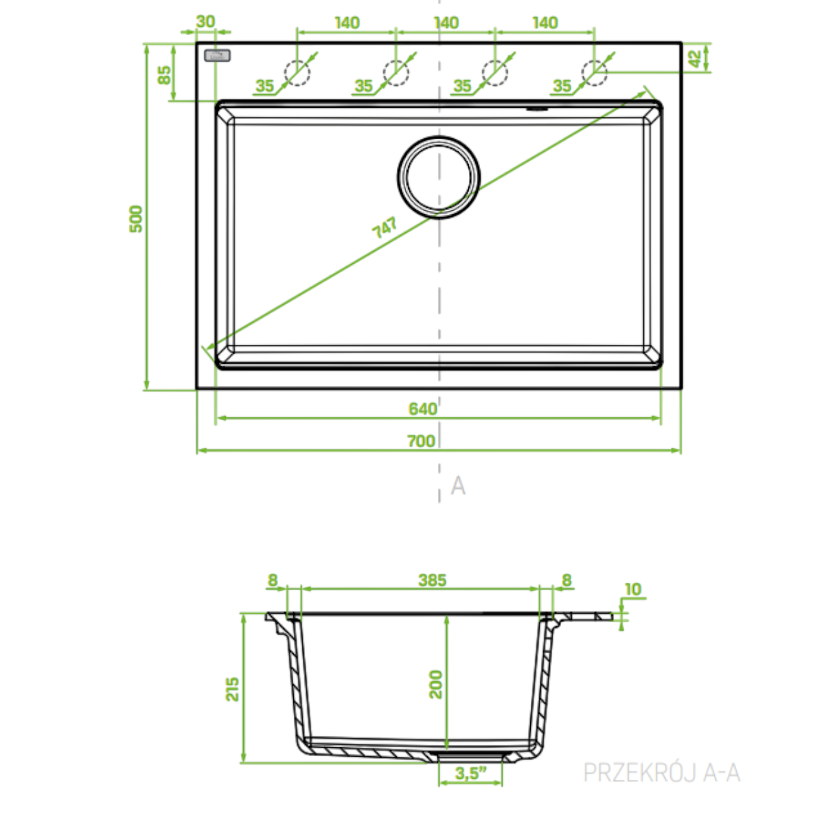 A mosogató 4 db csaplyuk-könnyítéssel érkezik, így több beépítési lehetőséget is biztosít. A 3,5”-os szűrőkosaras leeresztő és a helytakarékos szifon hatékony vízelvezetést és jobban kihasználható alsó szekrényteret ad.