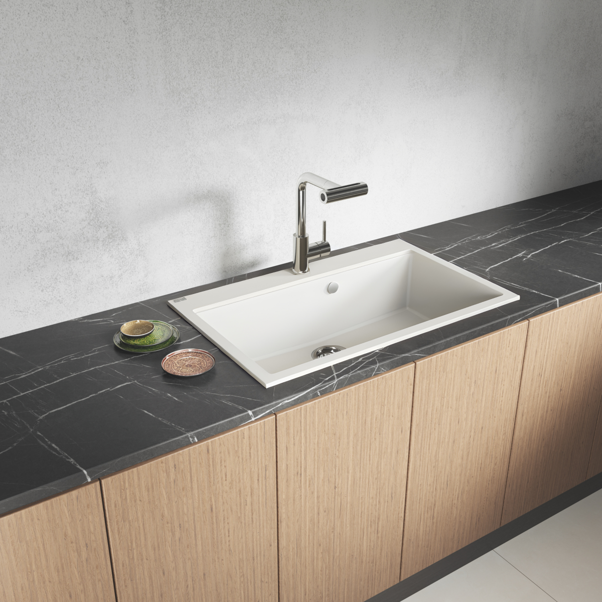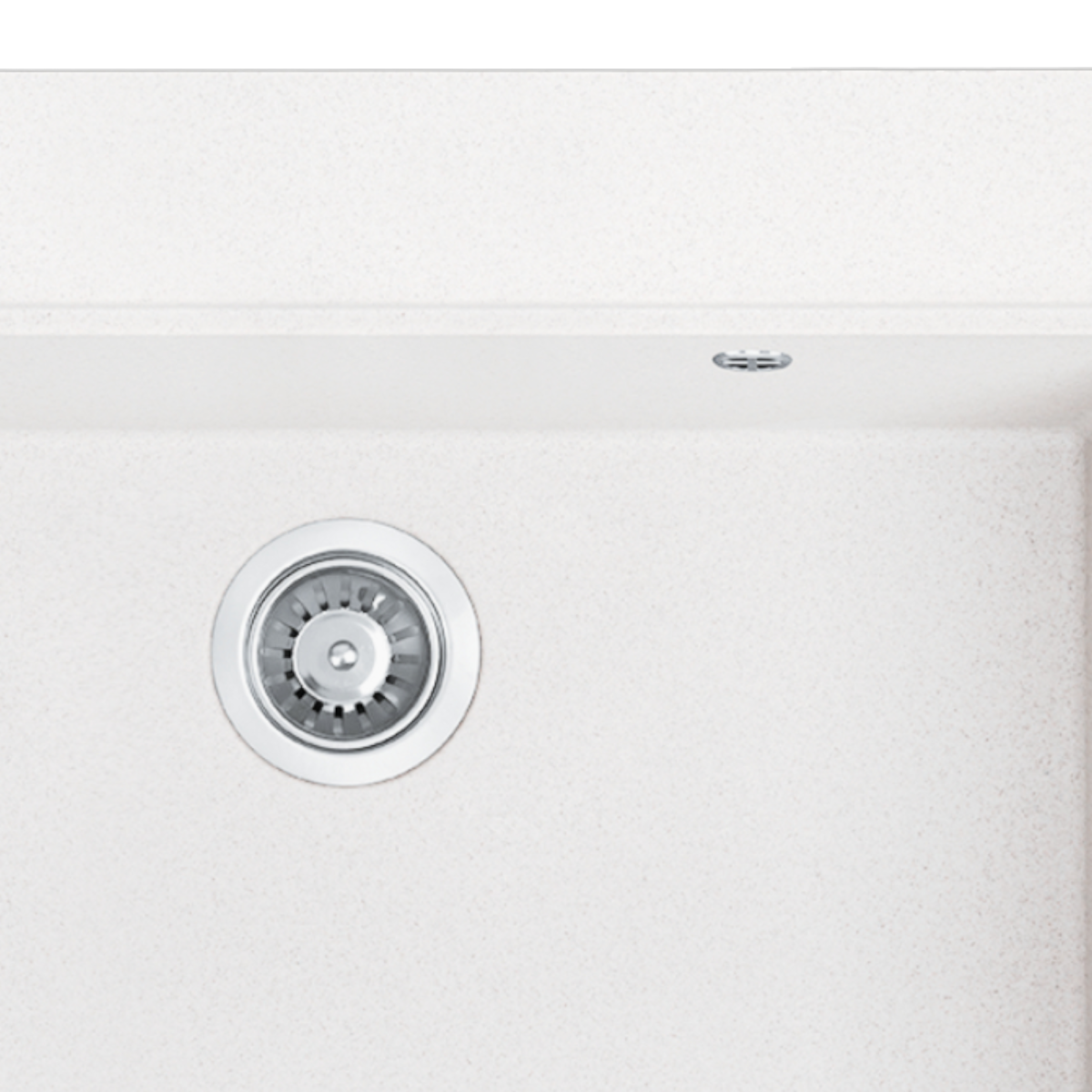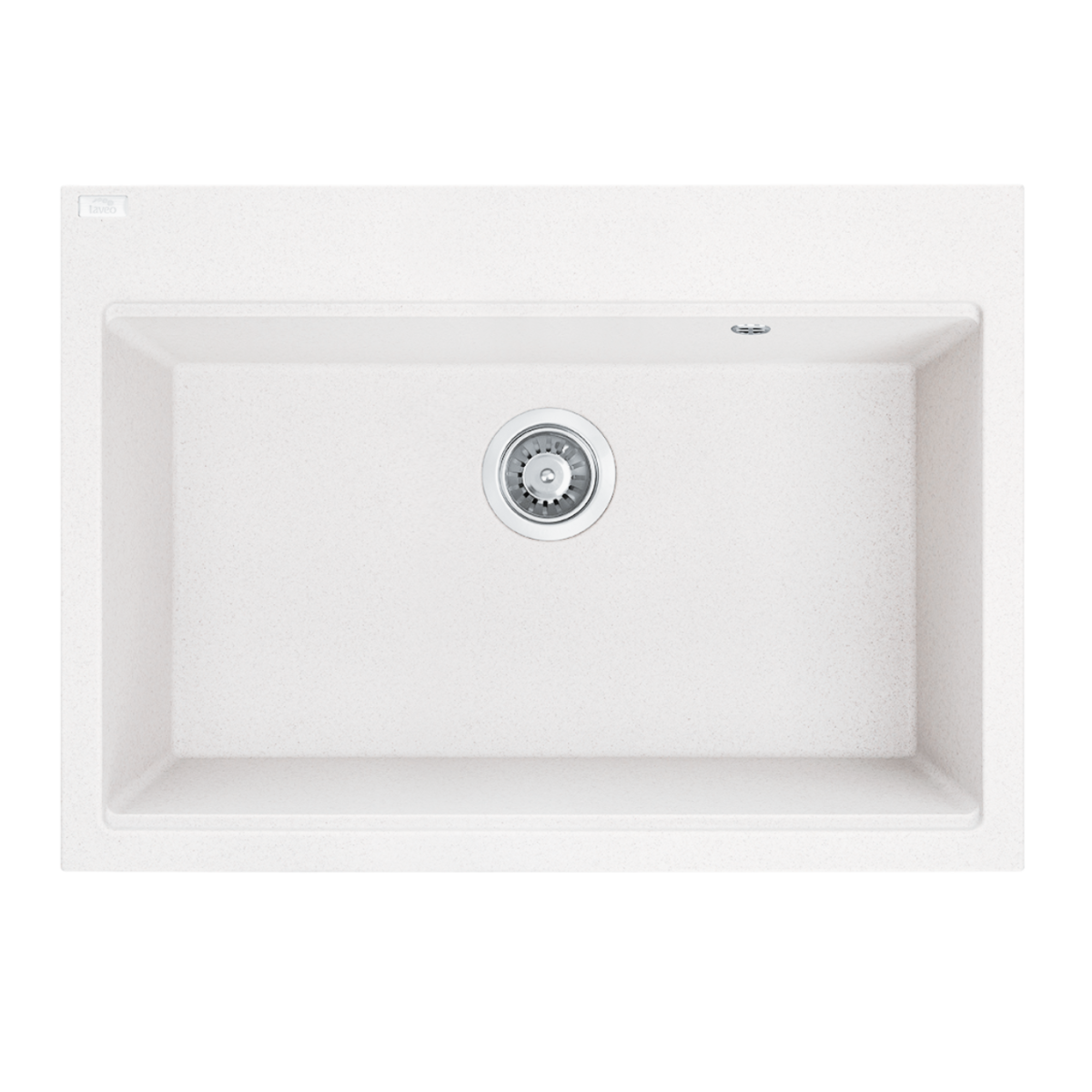 A TAU 7 egy nagy kapacitású, modern megjelenésű gránit mosogató, amely kiváló választás minden olyan konyhába, ahol fontos a tágas medence és a letisztult dizájn. A fehér szín friss, elegáns hatást kelt, és harmonikusan illeszkedik világos vagy klasszikus konyhabútorokhoz.